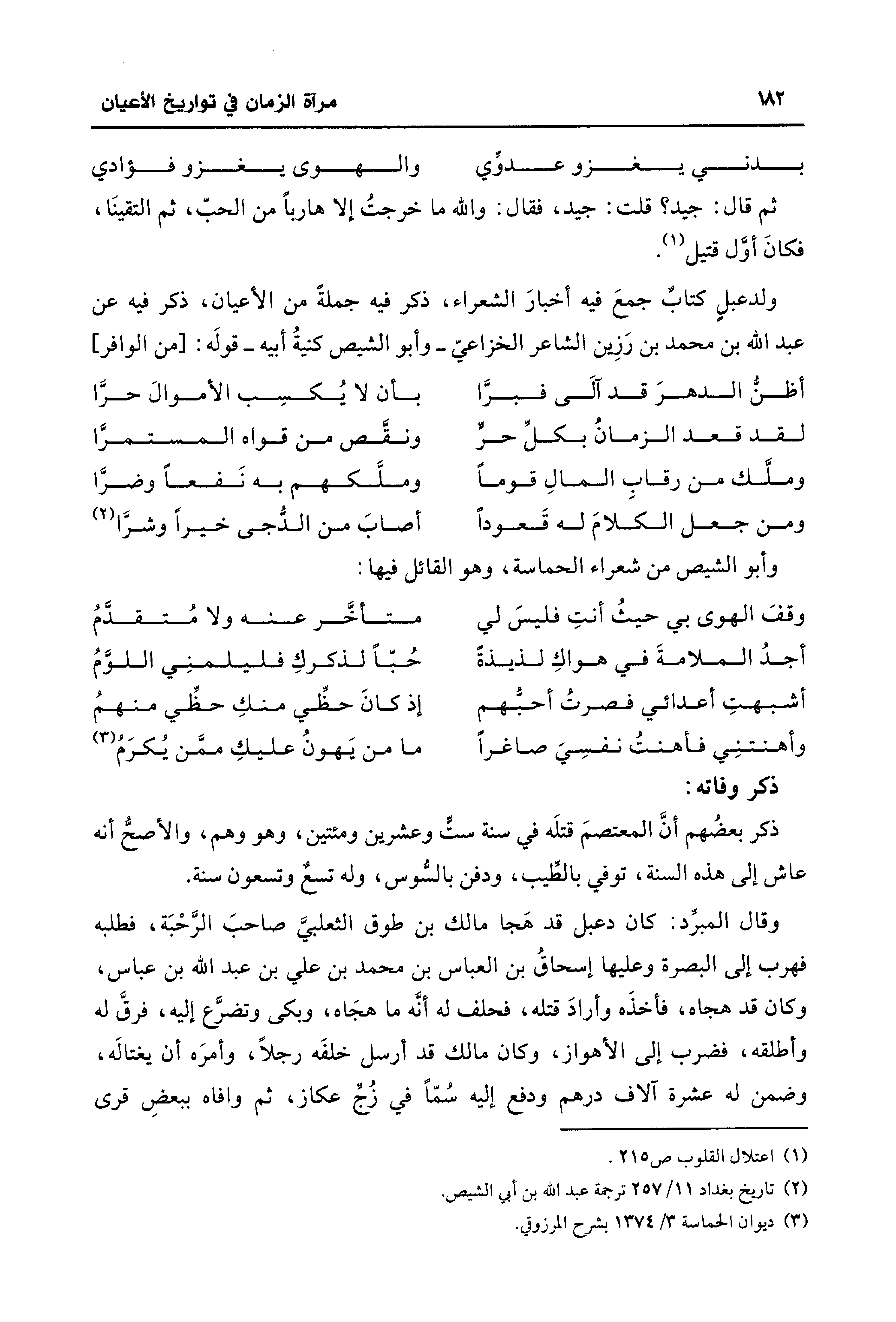 (¬2) تاريخ بغداد 11/ 257 ترجمة عبد الله بن أبي الشيص.