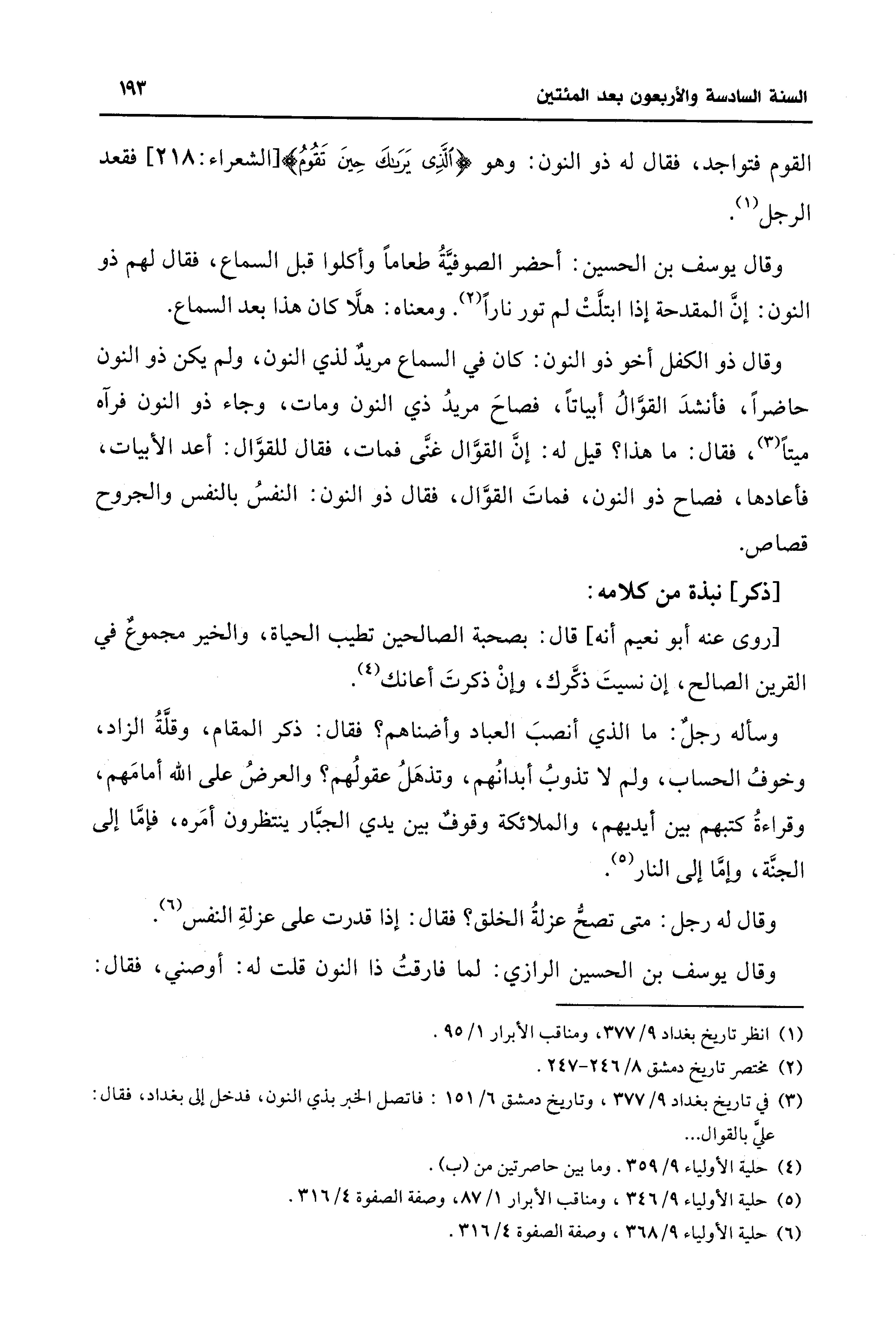 (¬3) في تاريخ بغداد 9/ 377، وتاريخ دمشق 6/ 151: فاتصل الخبر بذي النون، فدخل إلى بغداد، فقال: عليَّ بالقوال ...