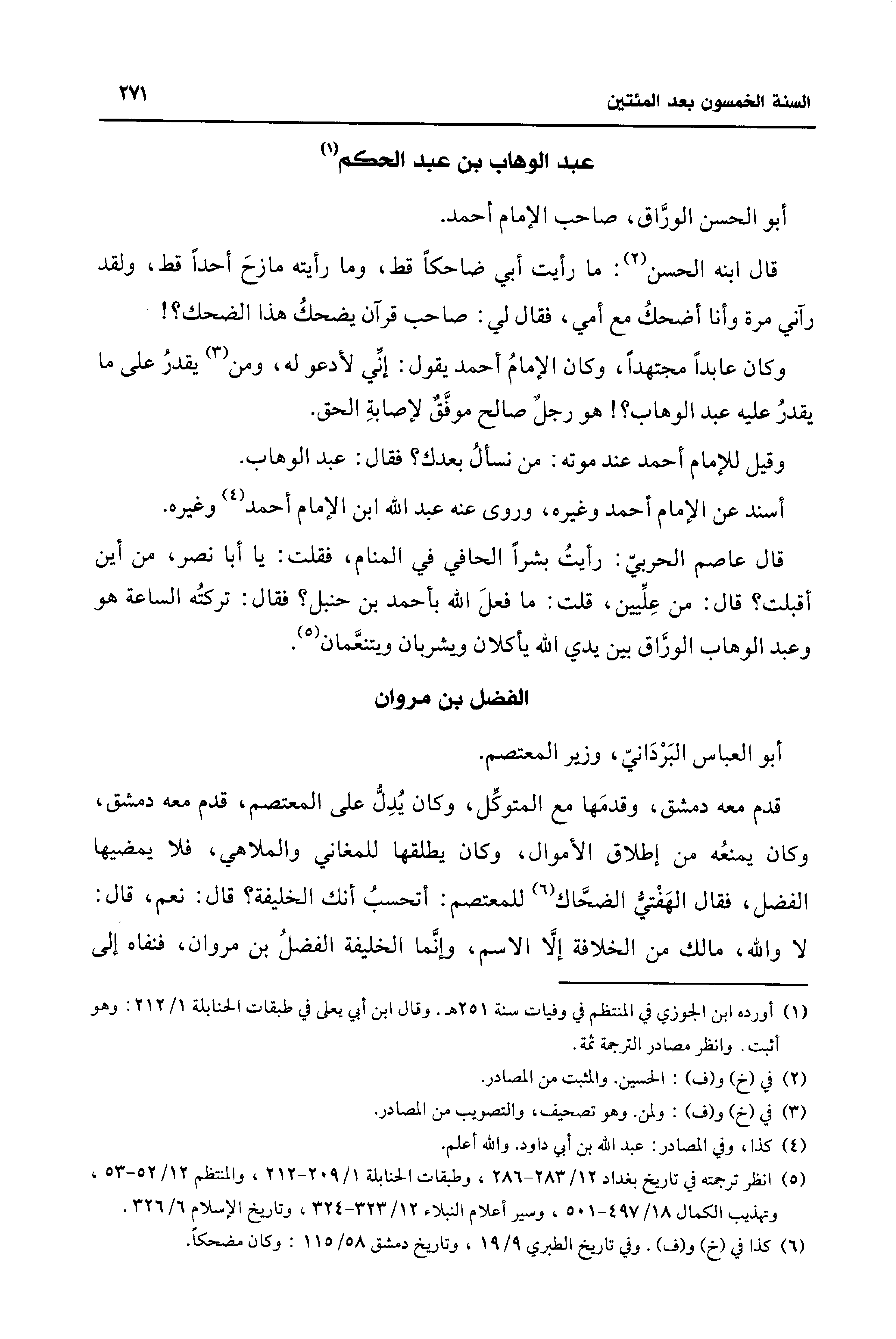 (¬5) انظر ترجمته فِي تاريخ بغداد 12/ 283 - 286، وطبقات الحنابلة 1/ 209 - 212، والمنتظم 12/ 52 - 53، وتهذيب الكمال 18/ 497 - 501، وسير أعلام النبلاء 12/ 323 - 324، وتاريخ الإسلام 6/ 326.