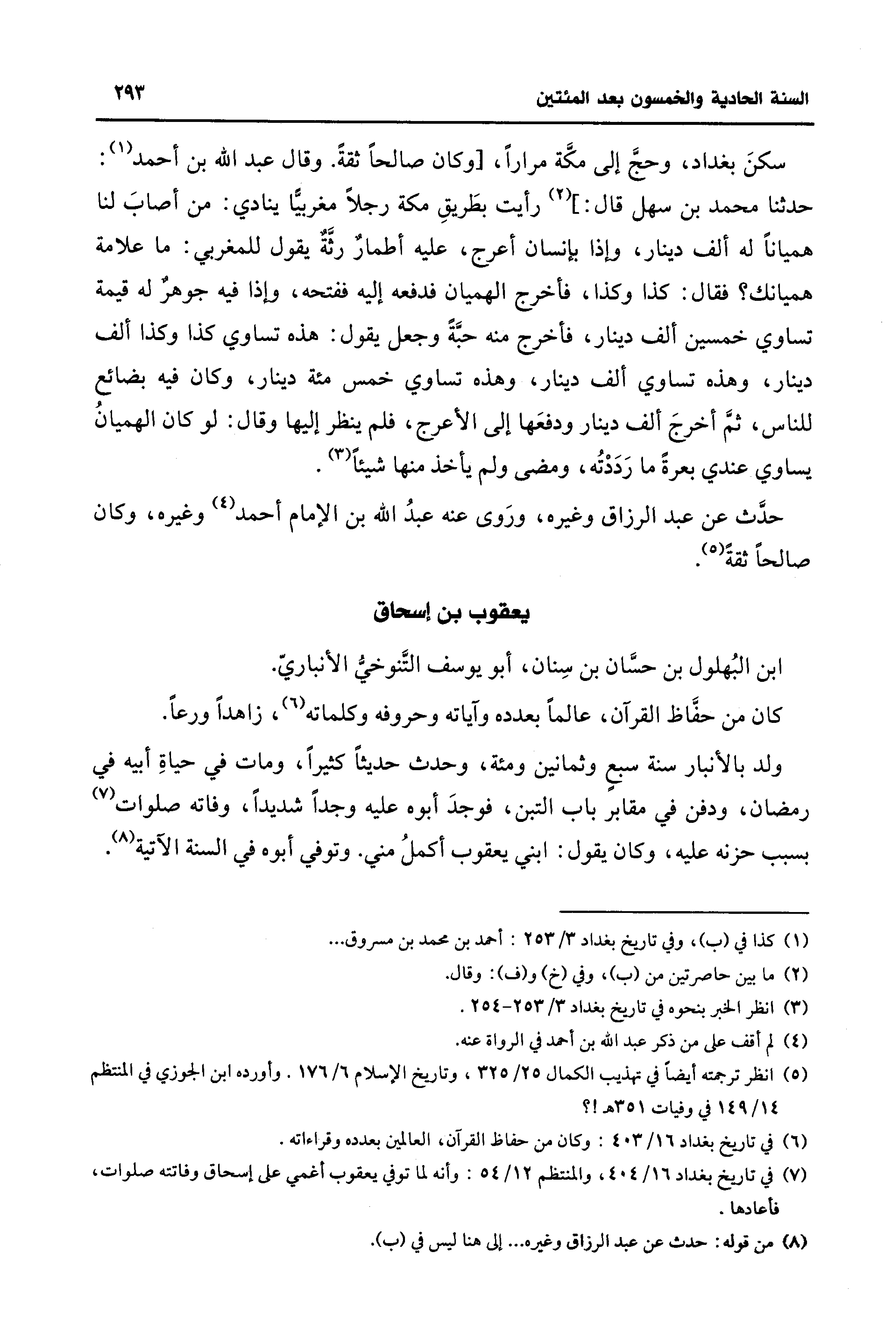 (¬7) فِي تاريخ بغداد 16/ 404، والمنتظم 12/ 54: وأنه لما توفي يعقوب أغمي على إسحاق وفاتته صلوات، فأعادها.