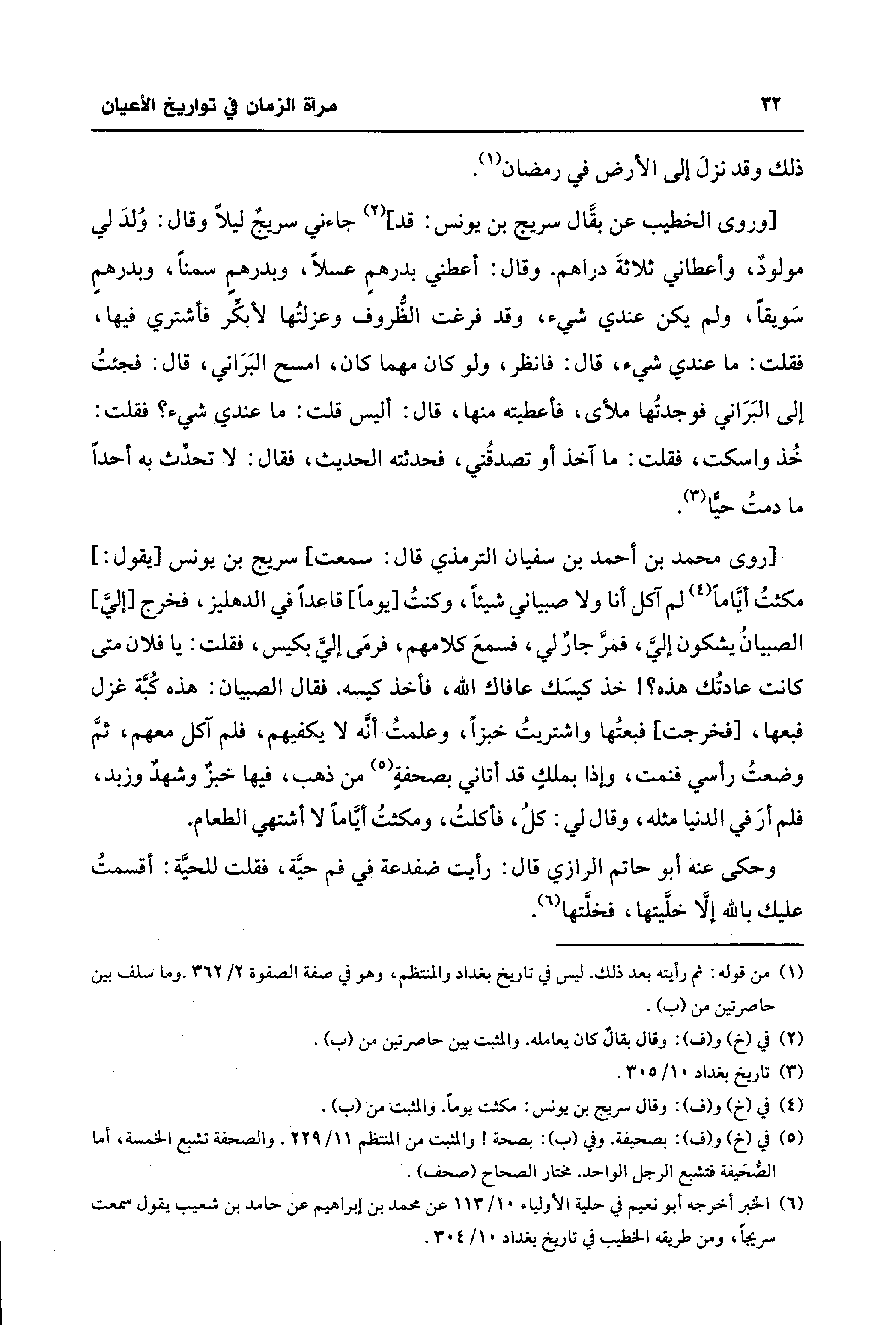 (¬1) من قوله: ثم رأيته بعد ذلك. ليس في تاريخ بغداد والمنتظم، وهو في صفة الصفوة 2/ 362. وما سلف بين حاصرتين من (ب).