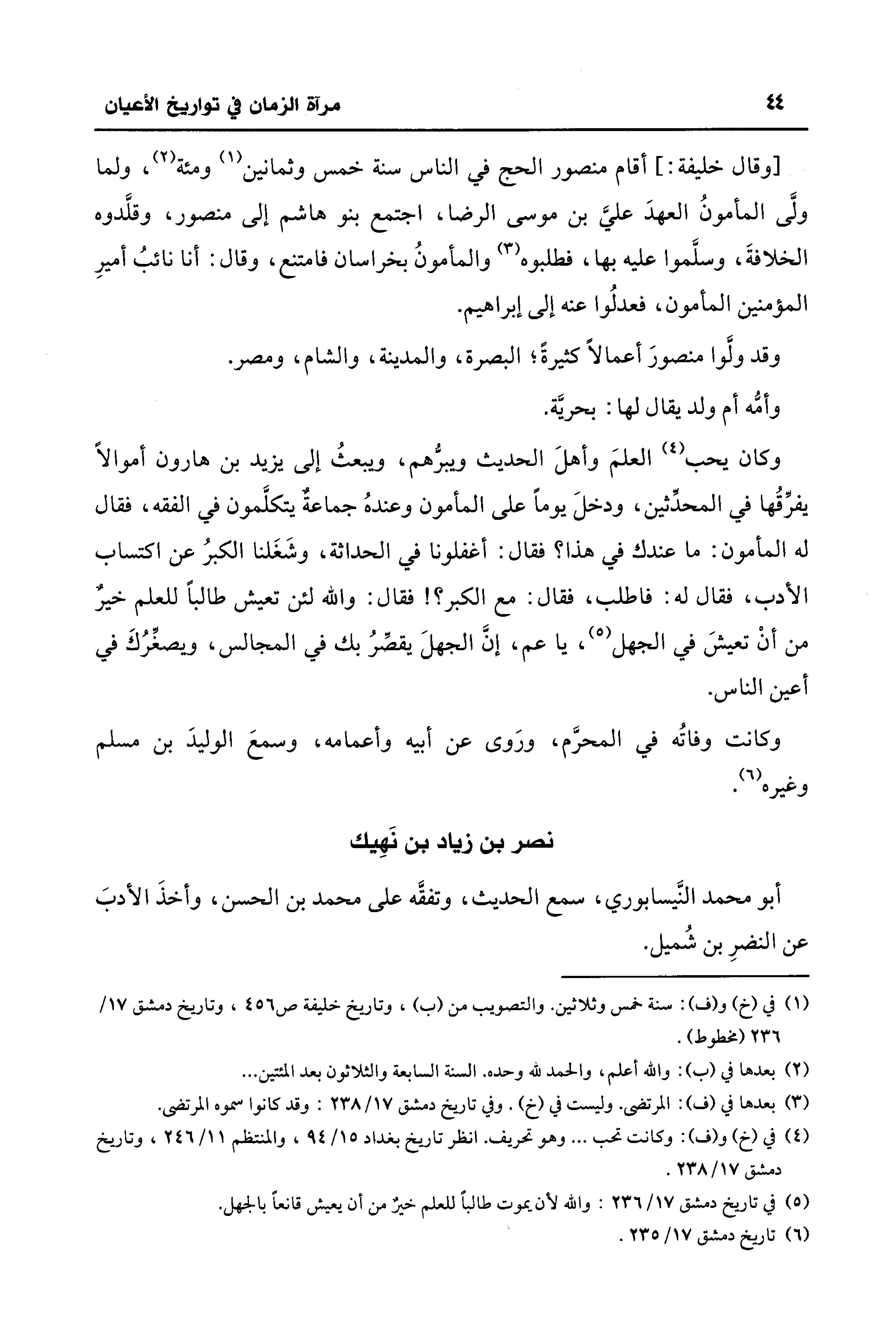 [وقال خليفة: ] أقام منصور الحج في الناس سنة خمس وثمانين (¬1) ومئة (¬2)، ولما ولَّى المأمونُ العهدَ عليَّ بن موسى الرضا، اجتمع بنو هاشم إلى منصور، وقلَّدوه الخلافةَ، وسلَّموا عليه بها، فطلبوه (¬3) والمأمونُ بخراسان فامتنع، وقال: أنا نائبُ أميرِ المؤمنين المأمون، فعدلُوا عنه إلى إبراهيم.