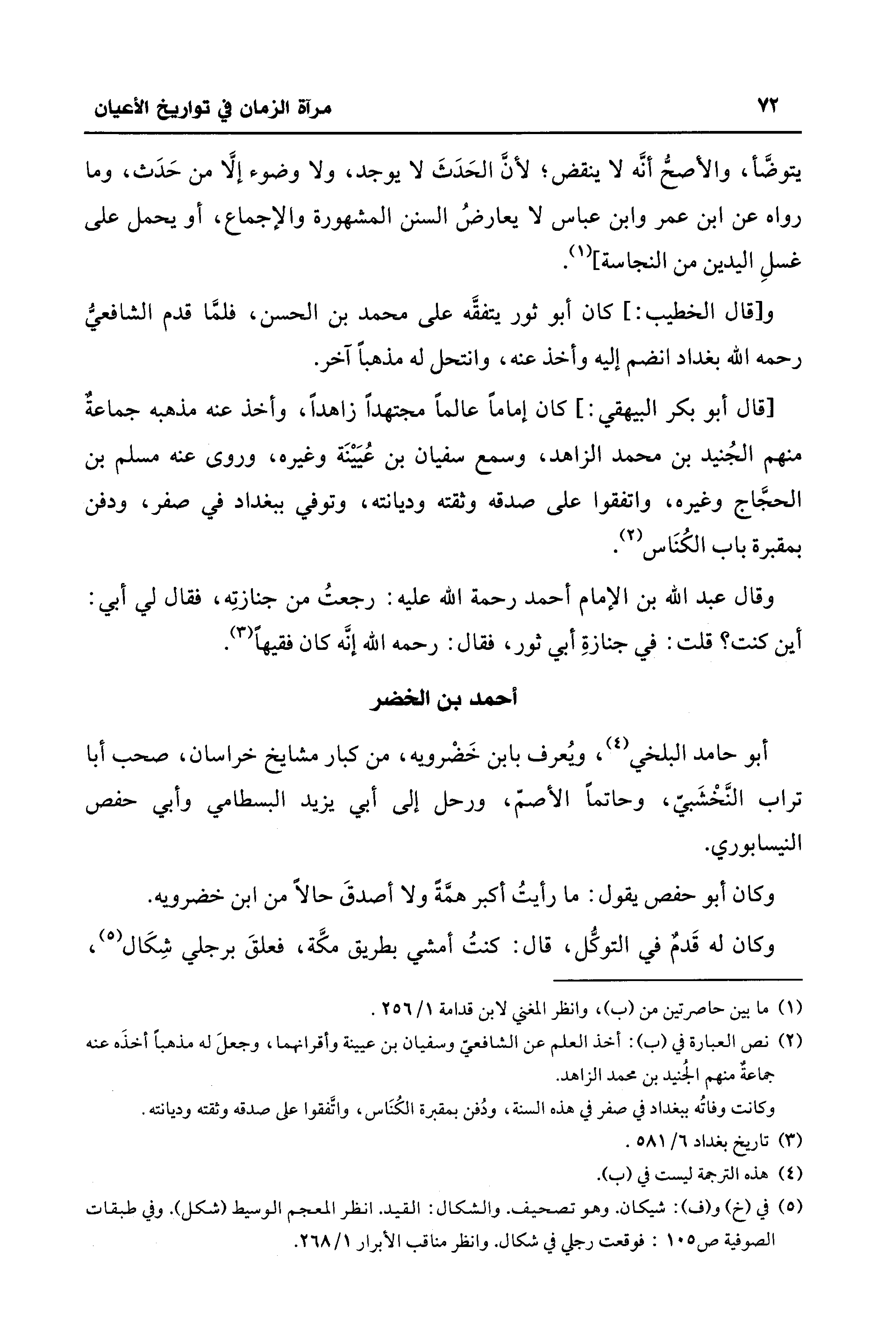 (¬2) نص العبارة في (ب): أخذ العلم عن الشافعيِّ وسفيان بن عيينة وأقرانهما، وجعلَ له مذهبًا أخذَه عنه جماعةٌ منهم الجُنيد بن محمد الزاهد.