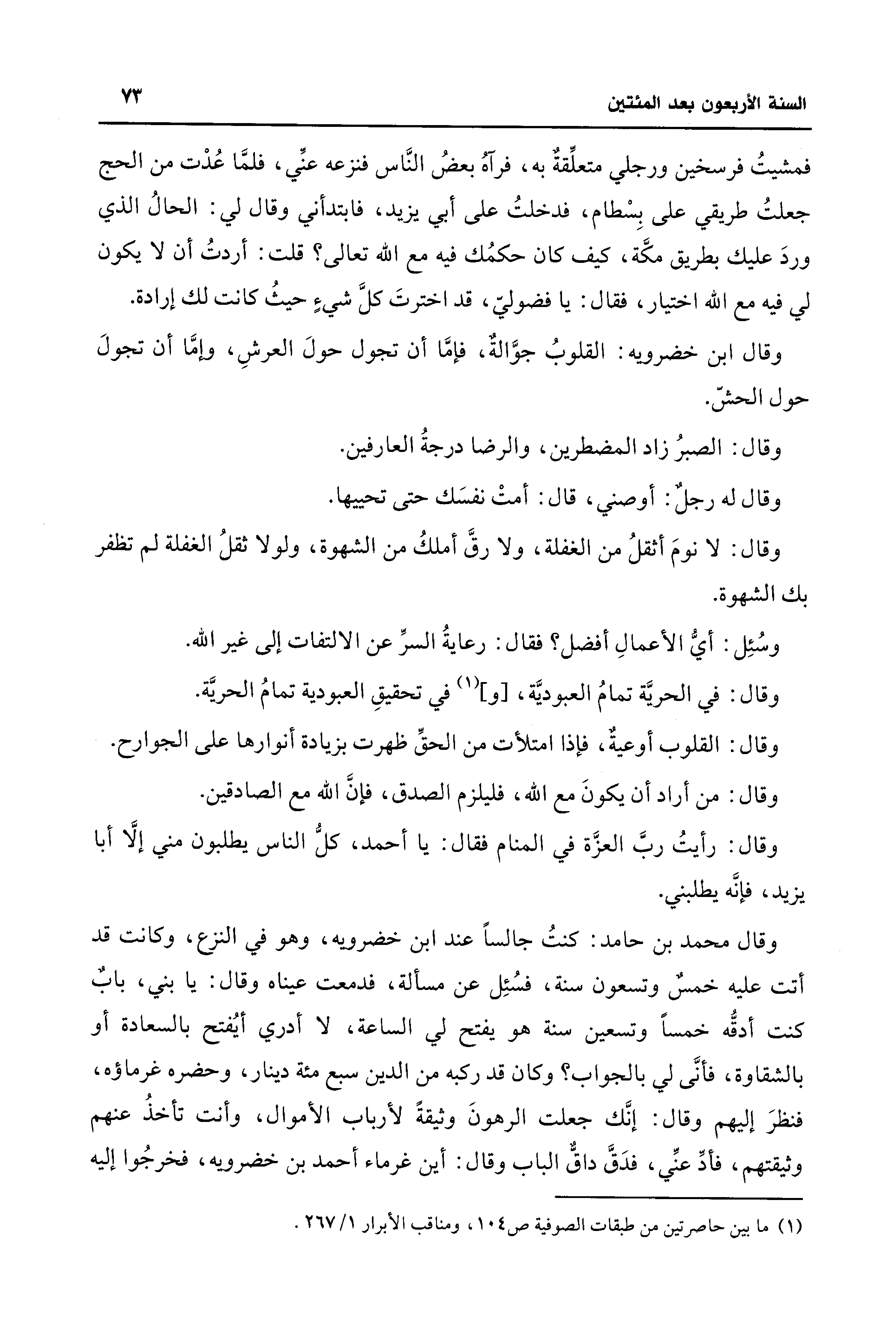 (¬1) ما بين حاصرتين من طبقات الصوفية ص 104، ومناقب الأبرار 1/ 267.