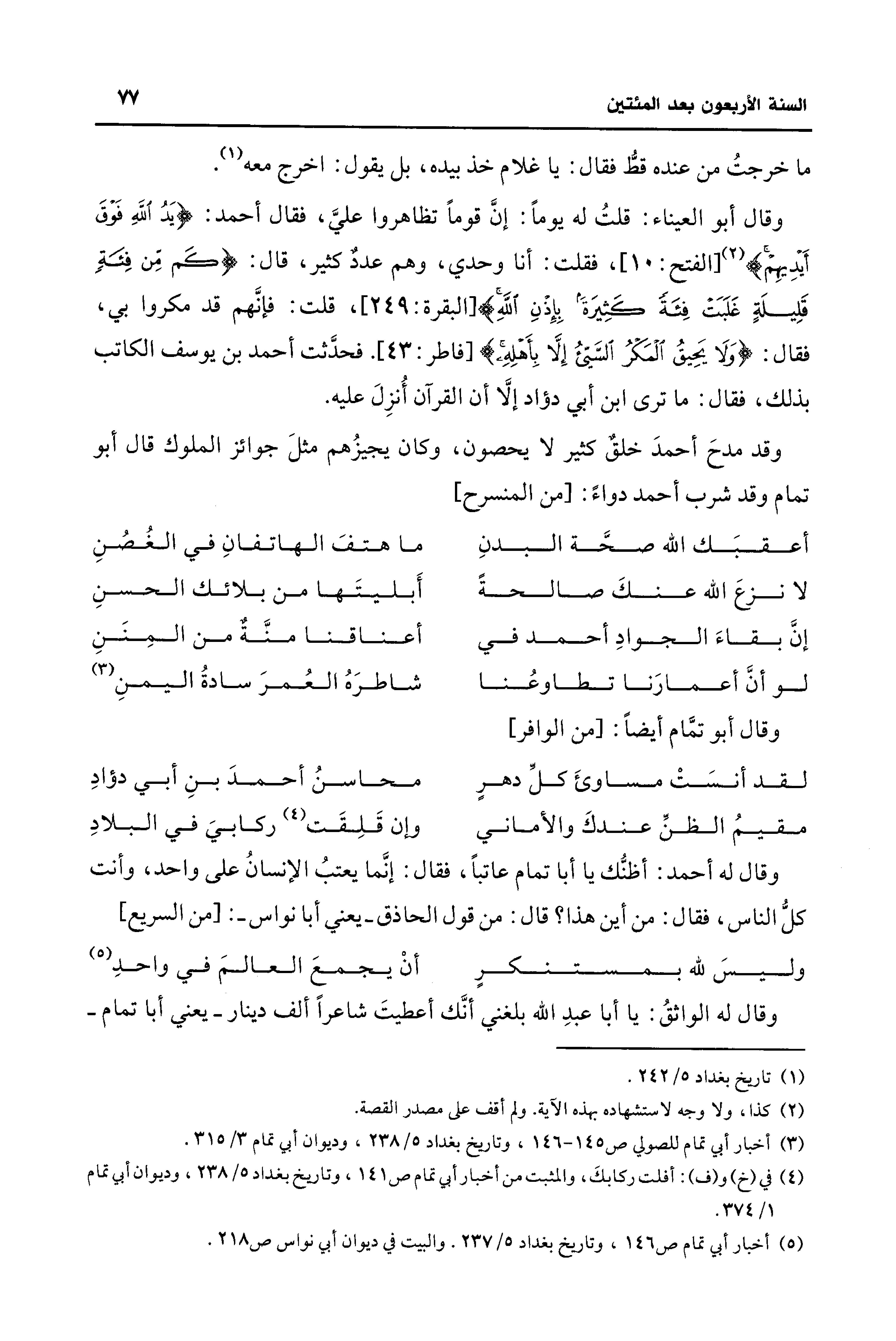 (¬5) أخبار أبي تمام ص 146، وتاريخ بغداد 5/ 237. والبيت في ديوان أبي نواس ص 218.