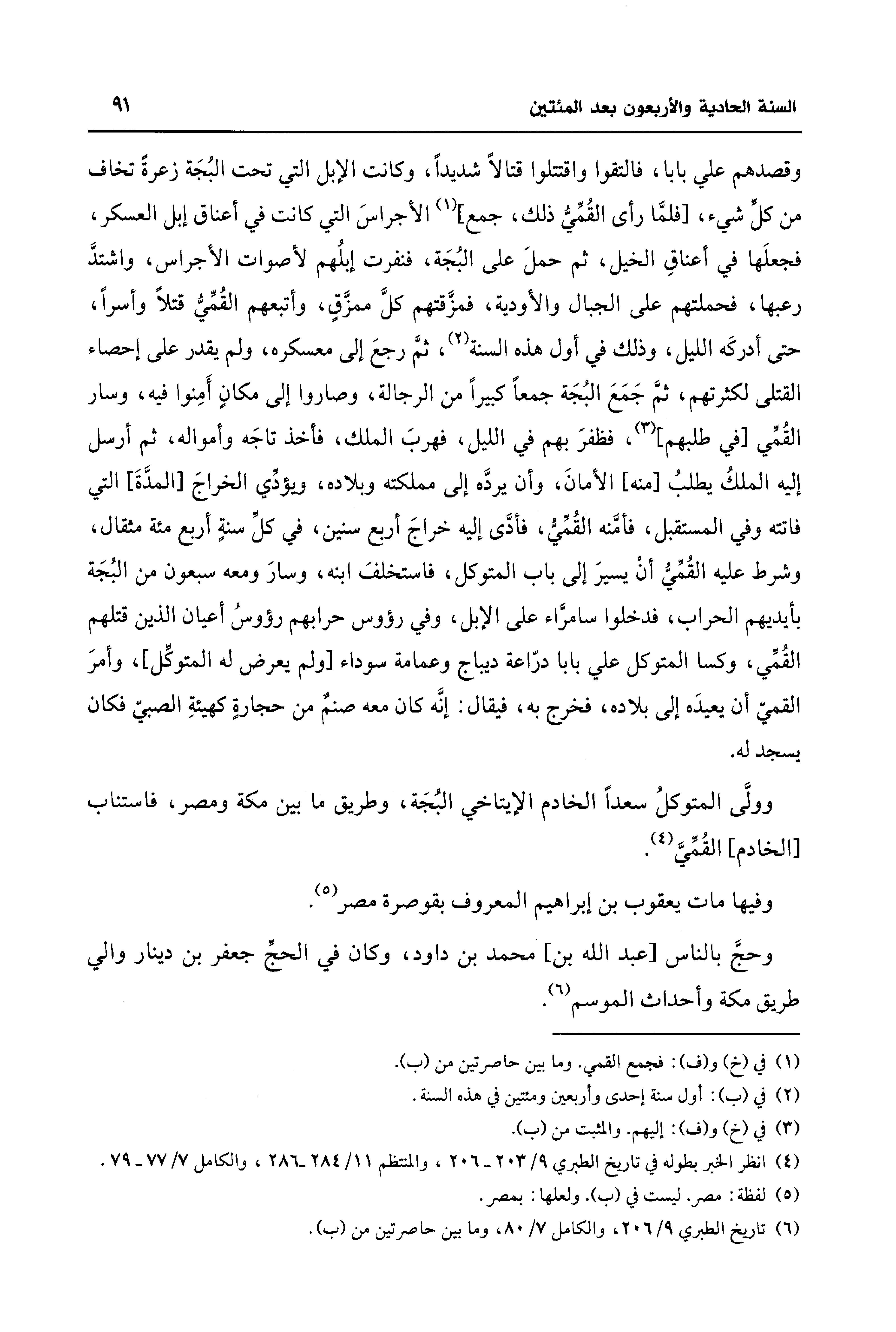 (¬4) انظر الخبر بطوله في تاريخ الطبري 9/ 203 - 206، والمنتظم 11/ 284 - 286، والكامل 7/ 77 - 79.