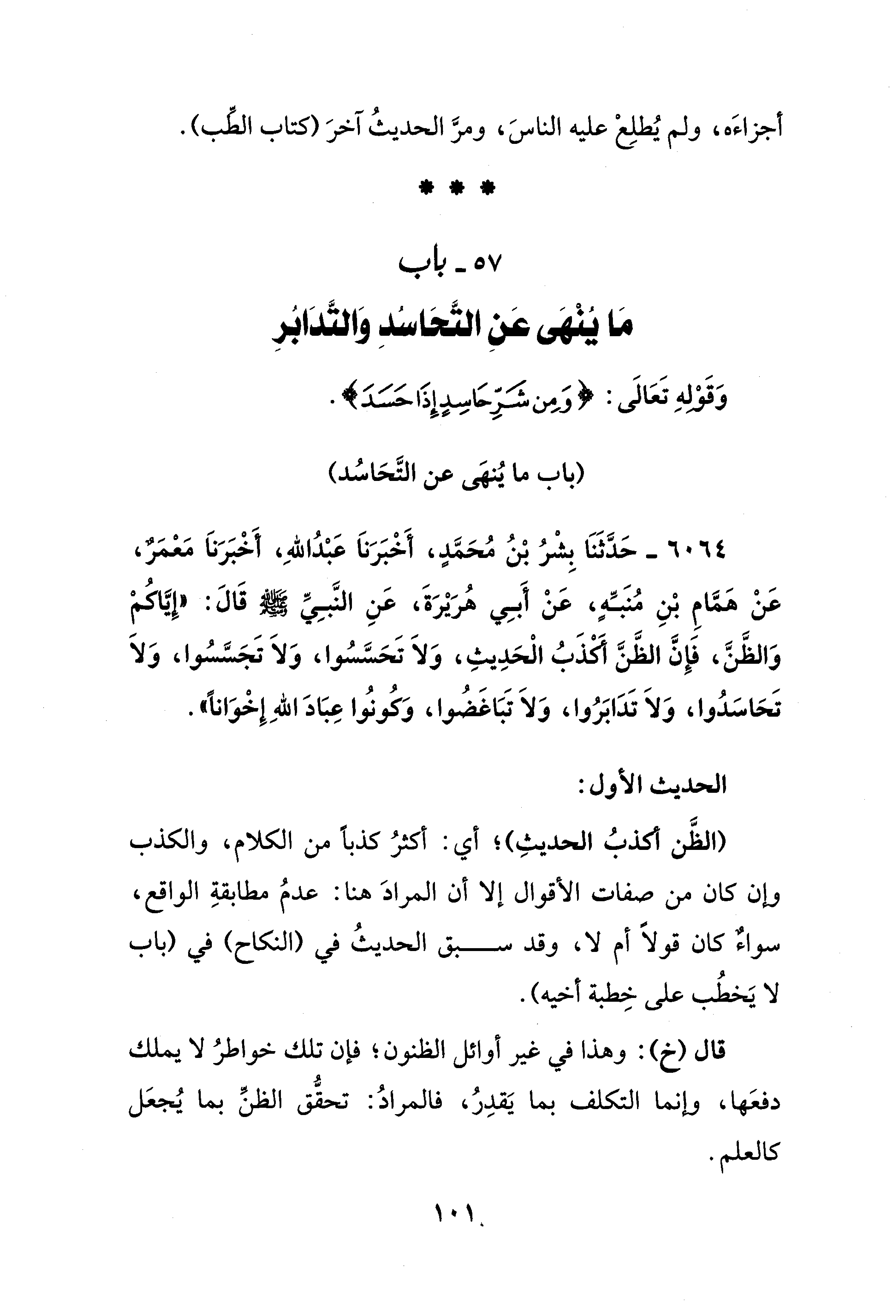 57 - باب مَا يُنْهَى عَنِ التَّحَاسُدِ وَالتَّدَابُرِ وَقَوْلهِ تَعَالَى: {وَمِنْ شَرِّ حَاسِدٍ إِذَا حَسَدَ}.