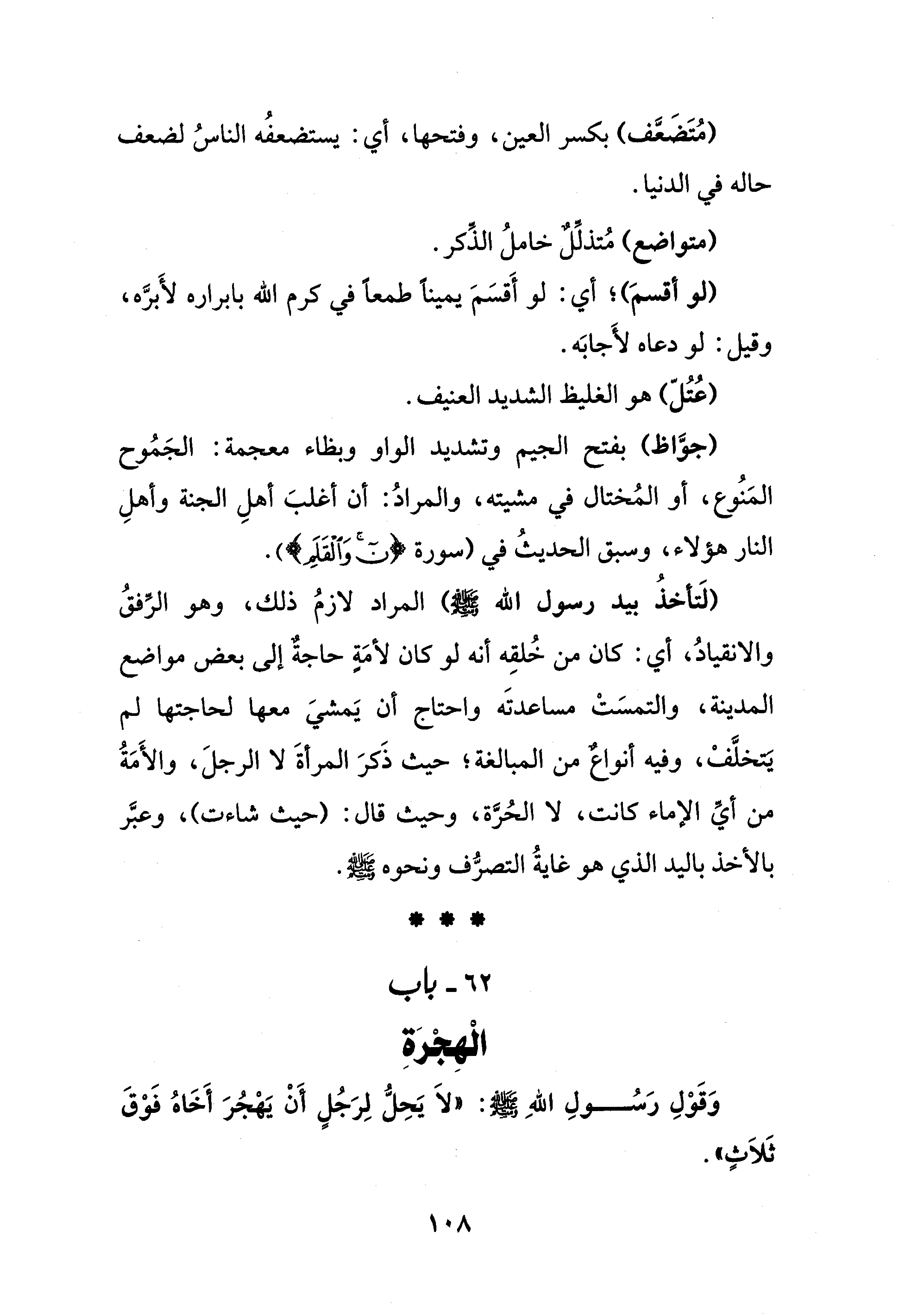 وَقَوْلِ رَسُولِ اللهِ - صلى الله عليه وسلم -: "لاَ يَحِلُّ لِرَجُلٍ أَنْ يَهْجُرَ أَخَاهُ فَوْقَ ثَلاَثٍ".