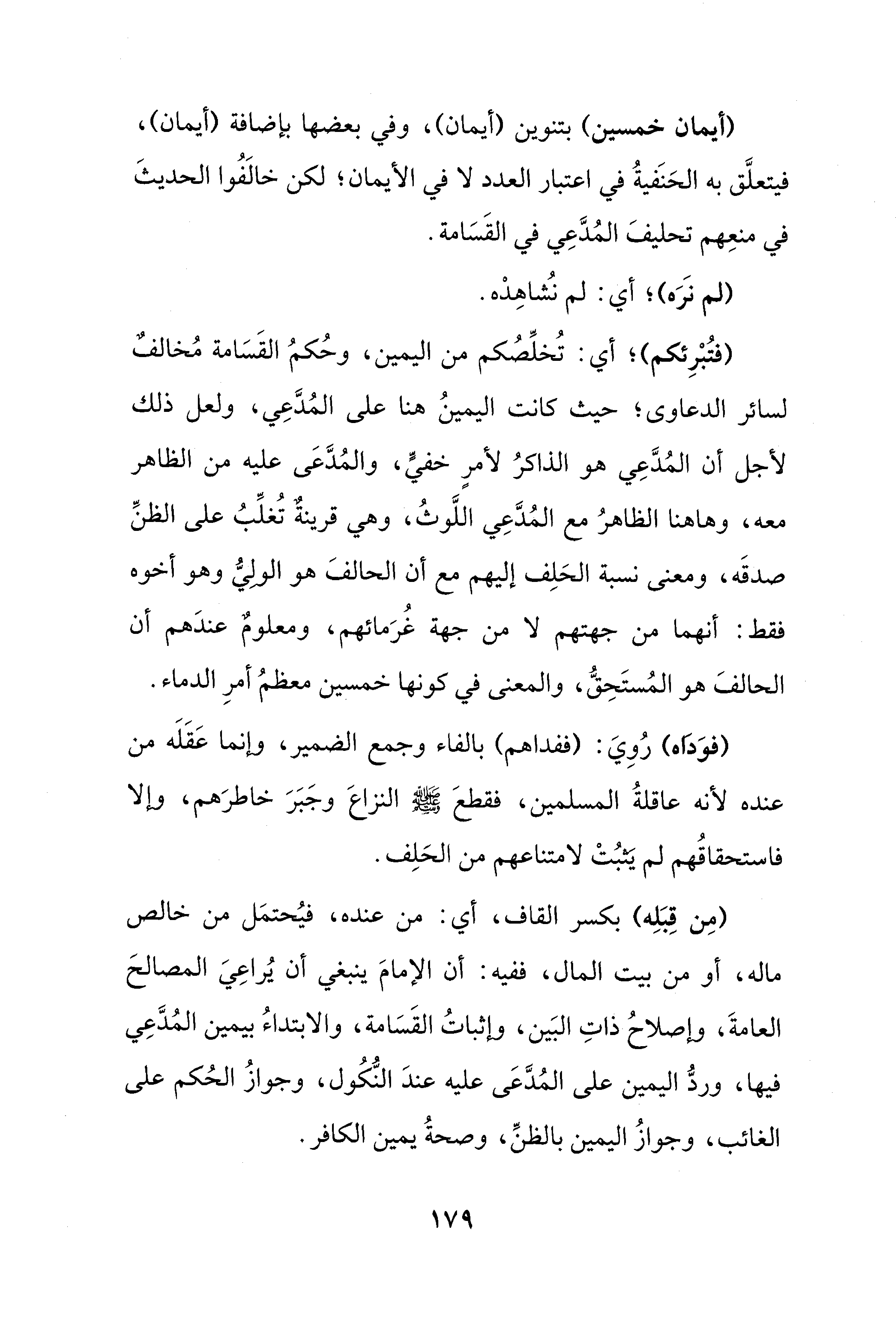 (أيمان خمسين) بتنوين (أيمان)، وفي بعضها بإضافة (أيمان)، فيتعلَّق به الحَنَفيةُ في اعتبار العدد لا في الأيمان؛ لكن خالَفُوا الحديثَ في منعِهم تحليفَ المُدَّعِي في القَسَامة.