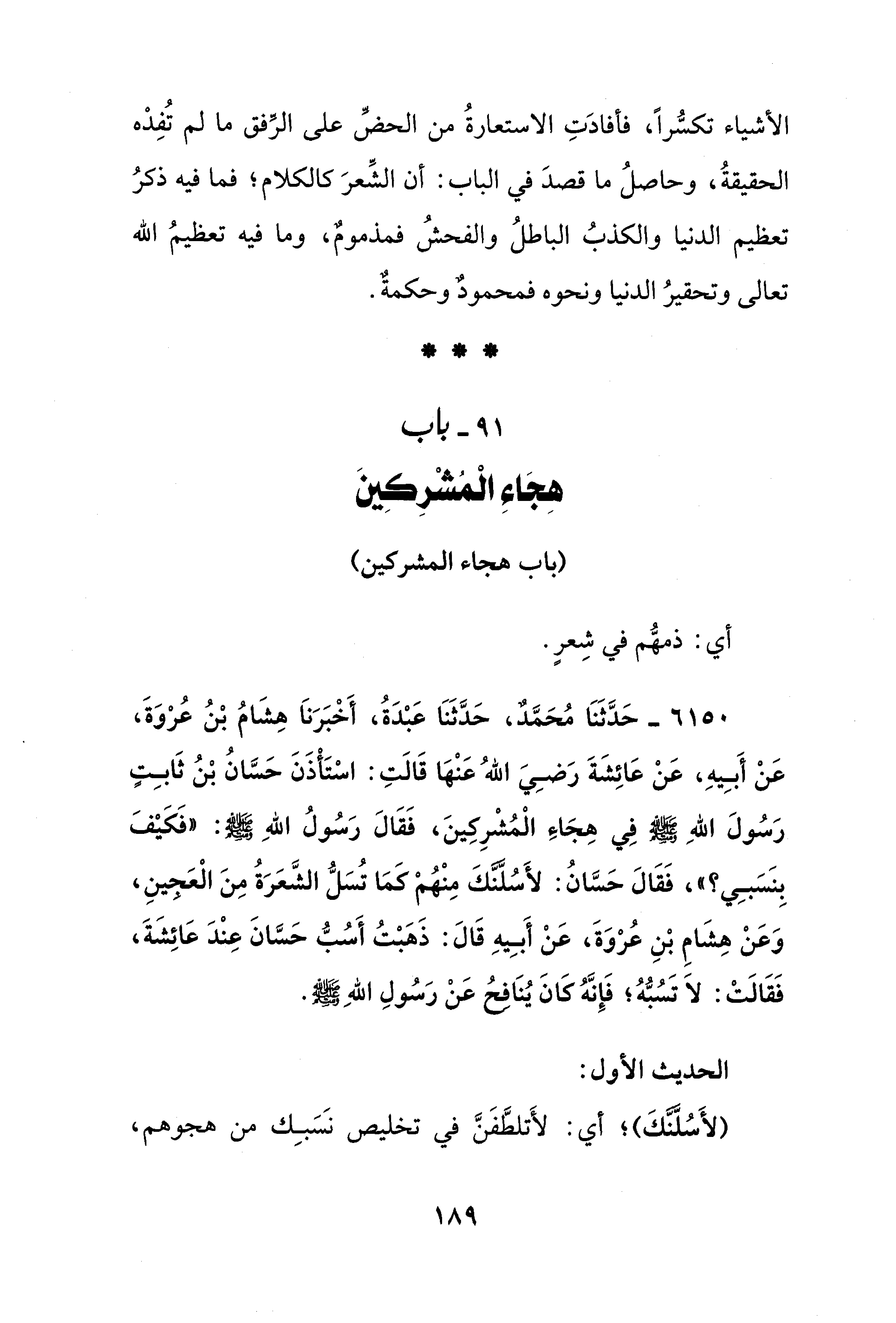 الأشياء تكسُّرًا، فأفادَتِ الاستعارةُ من الحضِّ على الرِّفق ما لم تُفِدْه الحقيقةُ، وحاصلُ ما قصدَ في الباب: أن الشِّعرَ كالكلام؛ فما فيه ذكرُ تعظيم الدنيا والكذبُ الباطلُ والفحشُ فمذمومٌ، وما فيه تعظيمُ الله تعالى وتحقيرُ الدنيا ونحوه فمحمودٌ وحكمةٌ.