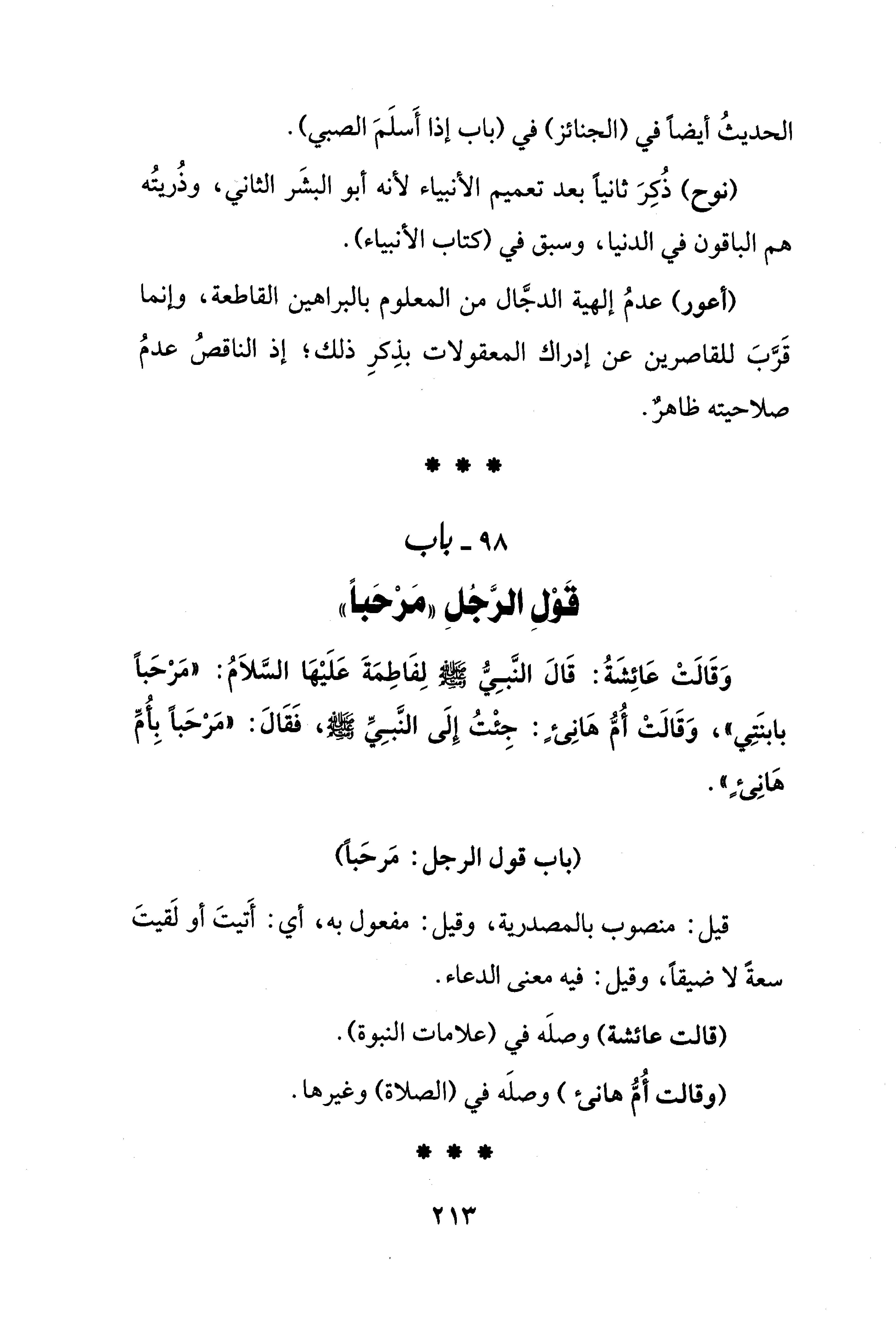 98 - باب قَوْلِ الرَّجُلِ "مَرْحَبًا"