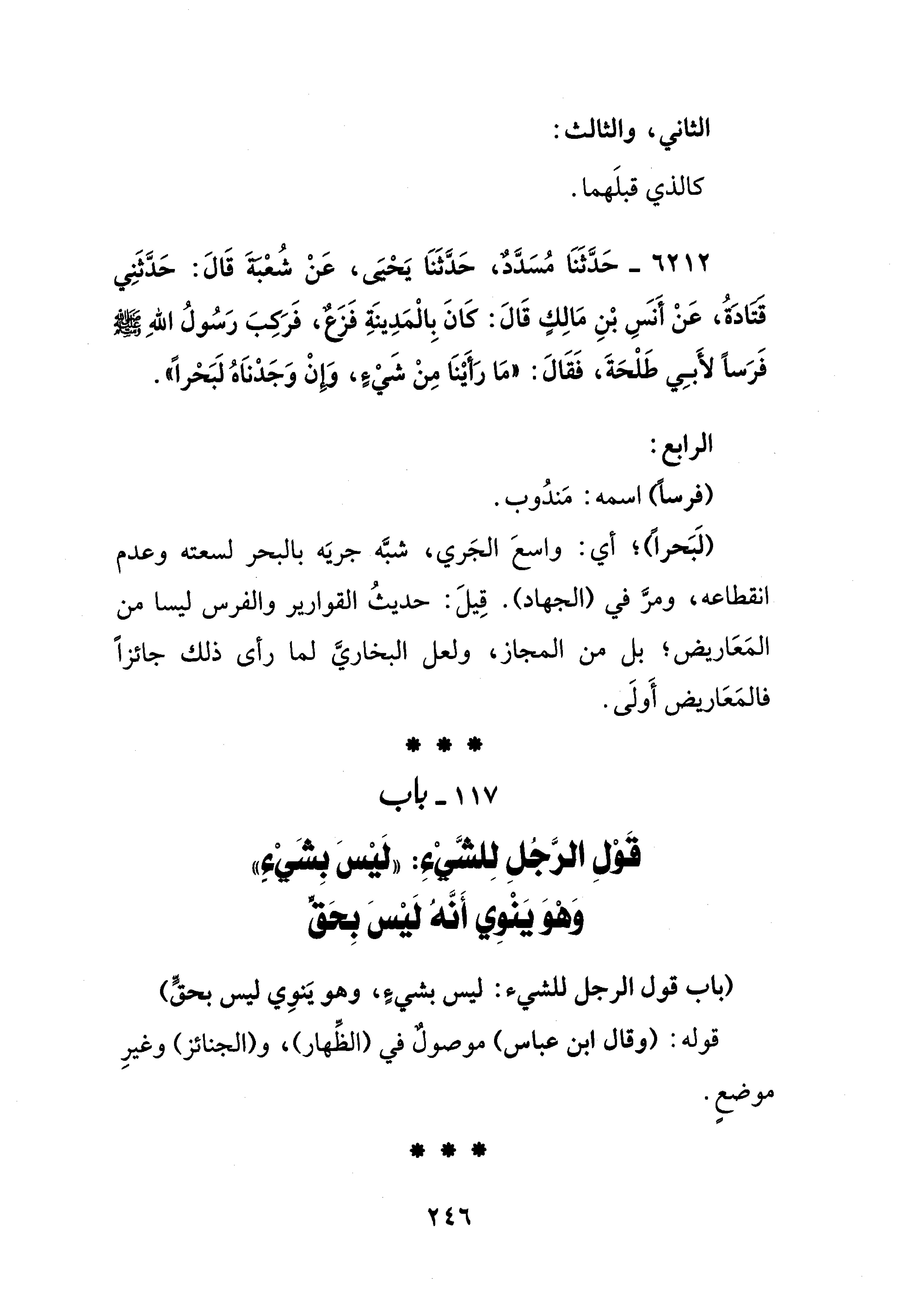 117 - باب قَوْلِ الرَّجُلِ لِلشَّيْءِ: "لَيْسَ بِشَيْءٍ" وَهْوَ يَنْوِي أَنَّهُ لَيْسَ بِحَقٍّ