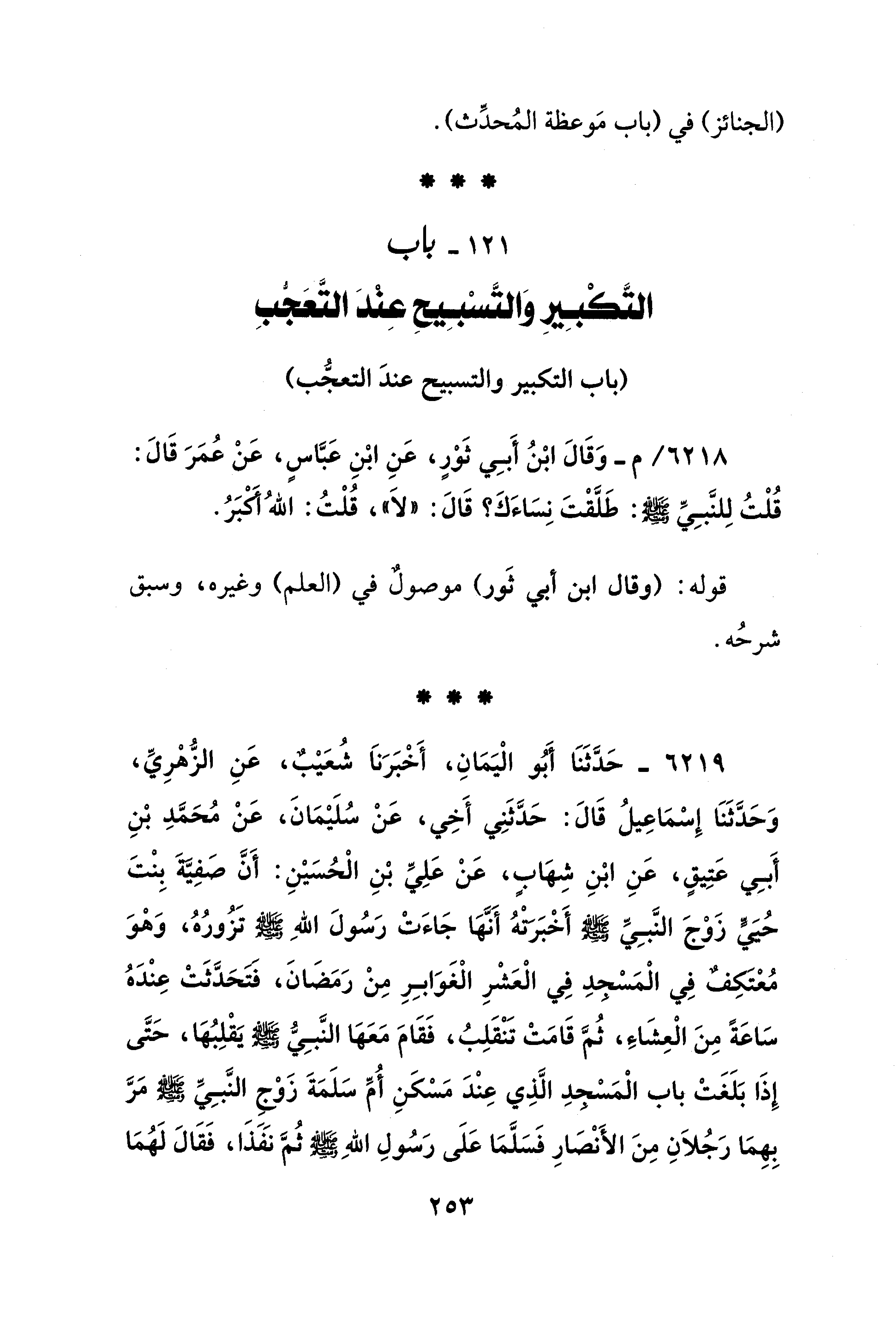 121 - باب التَّكْبِيرِ وَالتَّسْبِيحِ عِنْدَ التَّعَجُّبِ