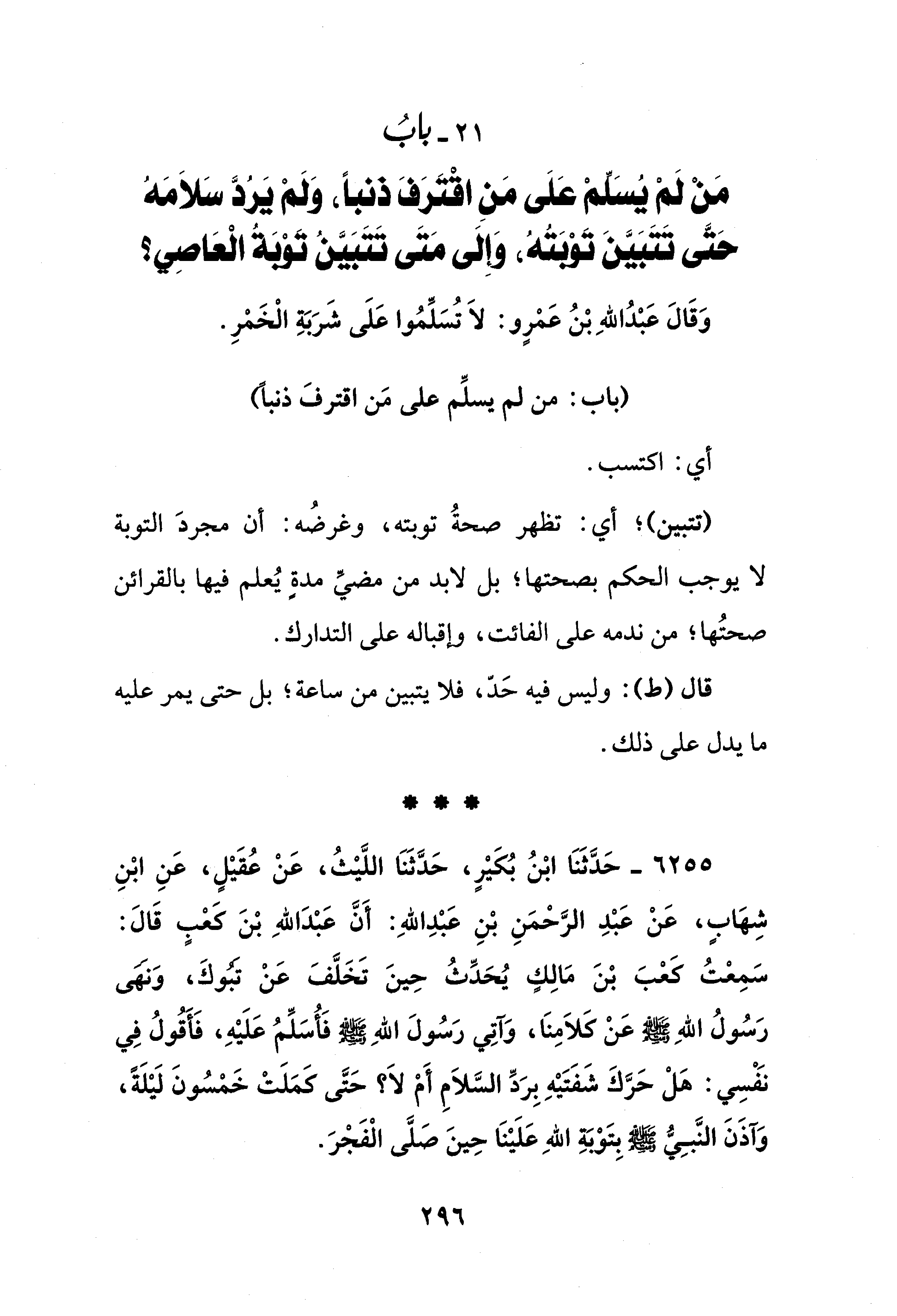 (باب: من لم يسلِّم على مَن اقترفَ ذنبًا)