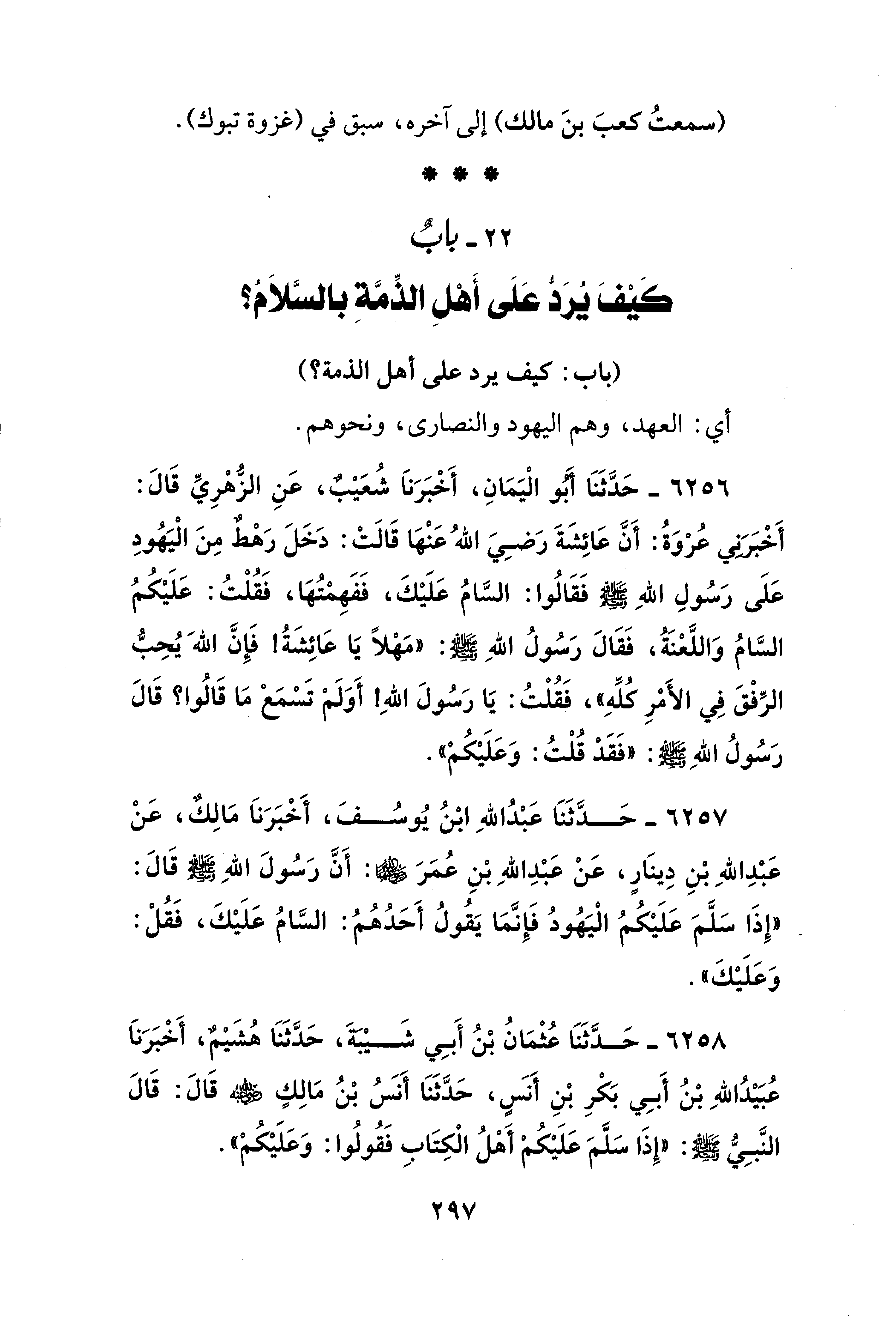 22 - بابٌ كَيْفَ يُرَدُّ عَلَى أَهْلِ الذِّمَّةِ بالسَّلاَم؟