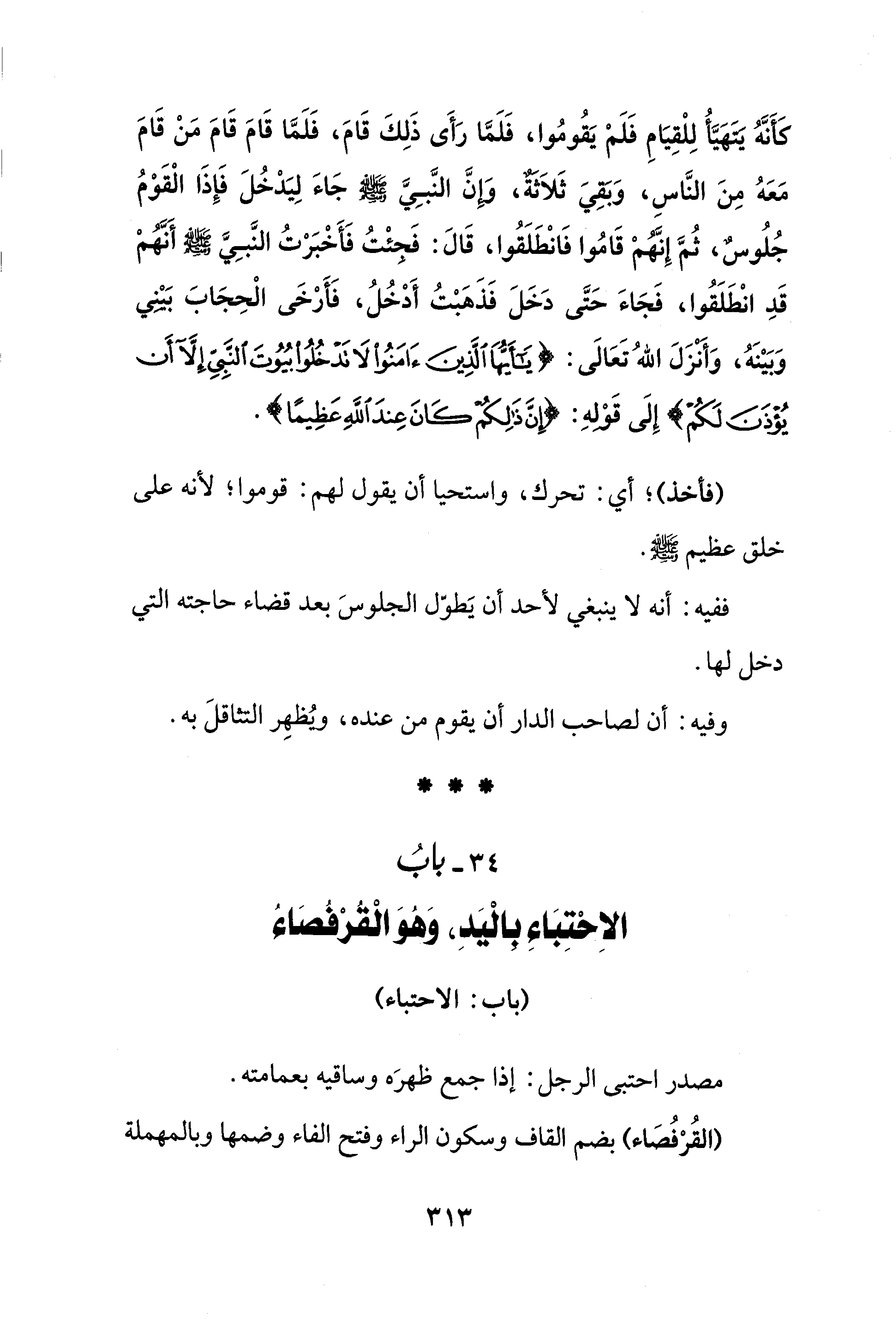 34 - بابُ الاِحْتِبَاءِ بالْيَدِ، وَهُوَ الْقُرْفُصَاءُ