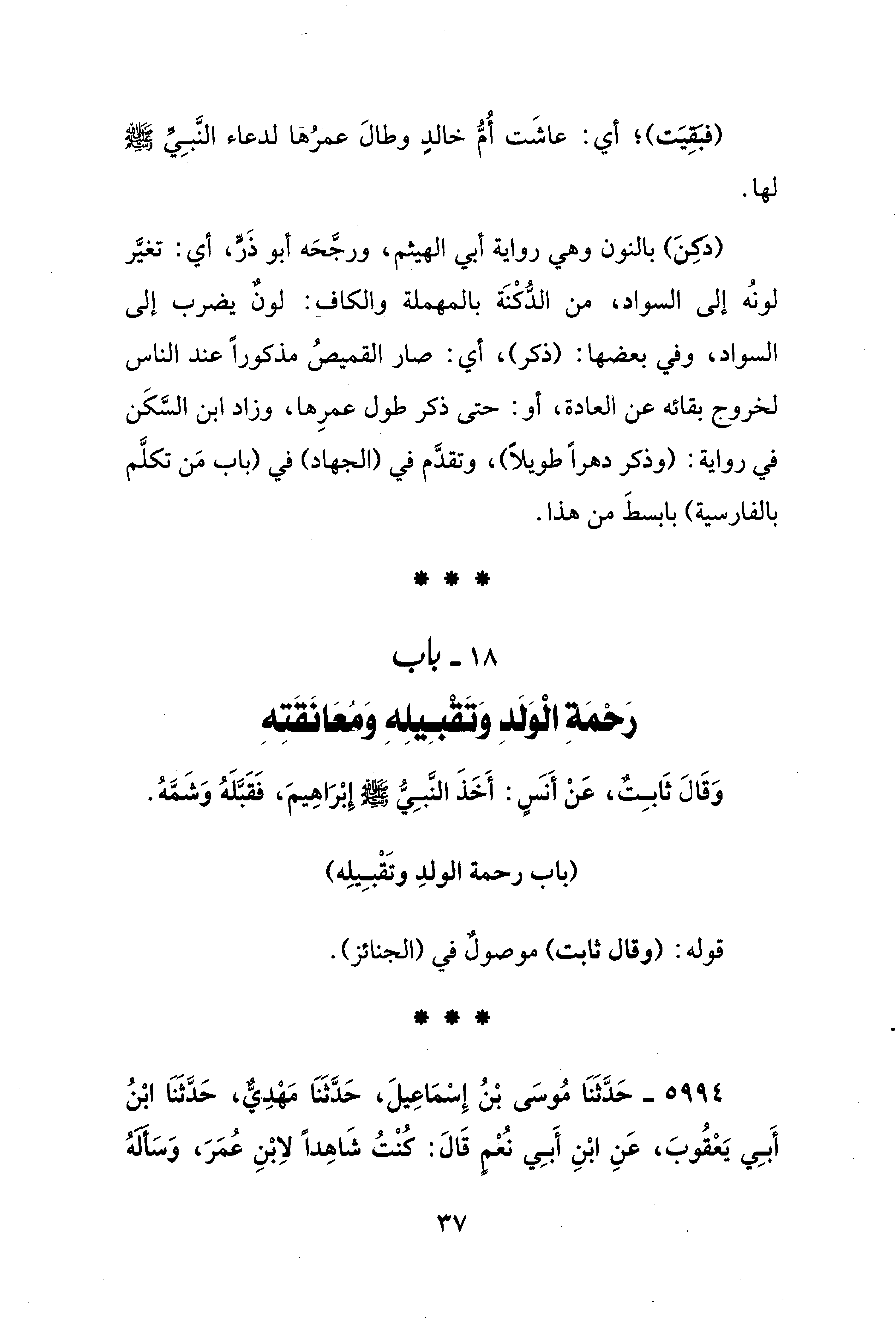 18 - باب رَحْمَةِ الْوَلَدِ وَتَقْبِيلِهِ وَمُعَانَقَتِهِ