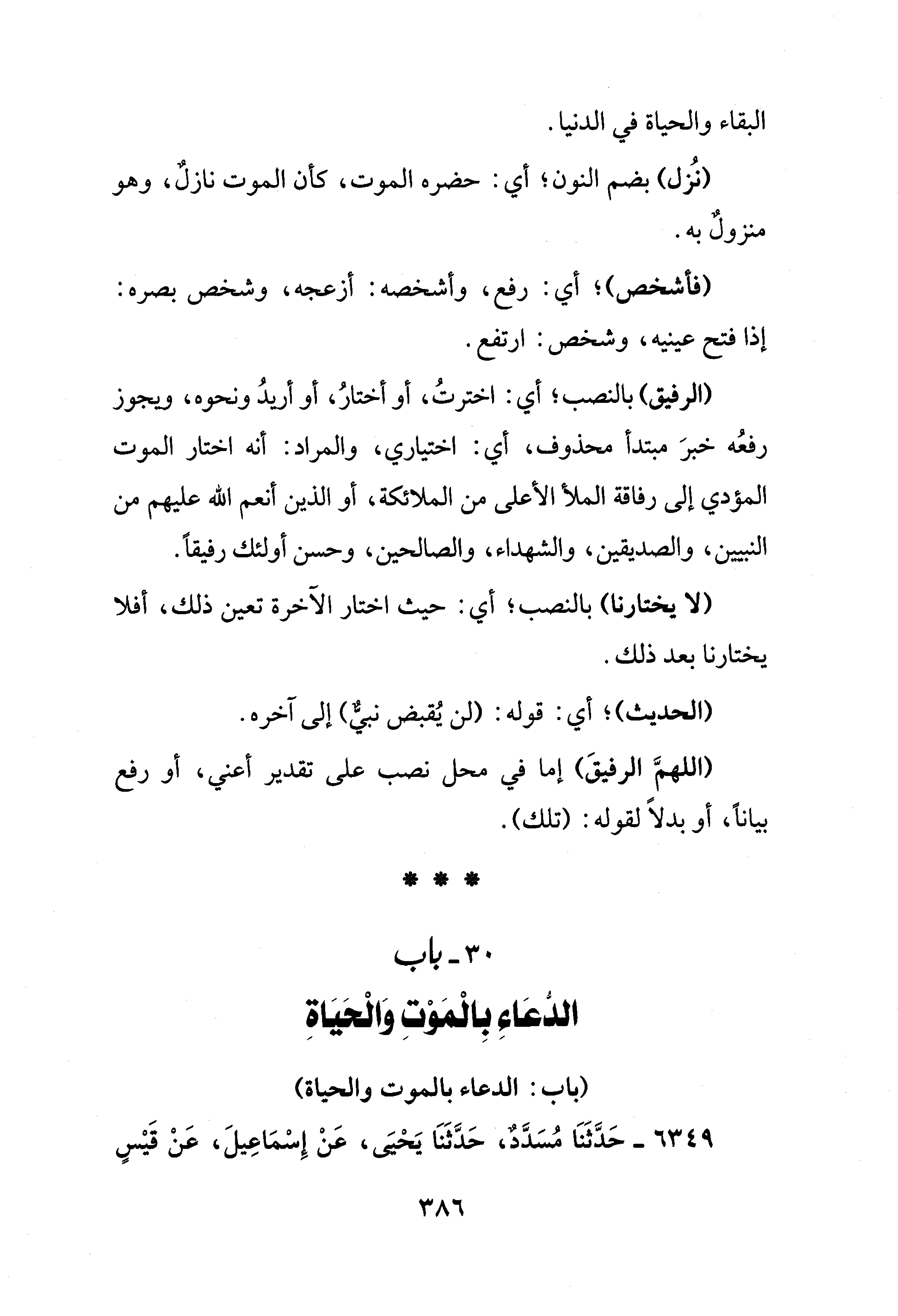 30 - باب الدُّعَاءِ بِالْمَوْتِ وَالْحَيَاةِ