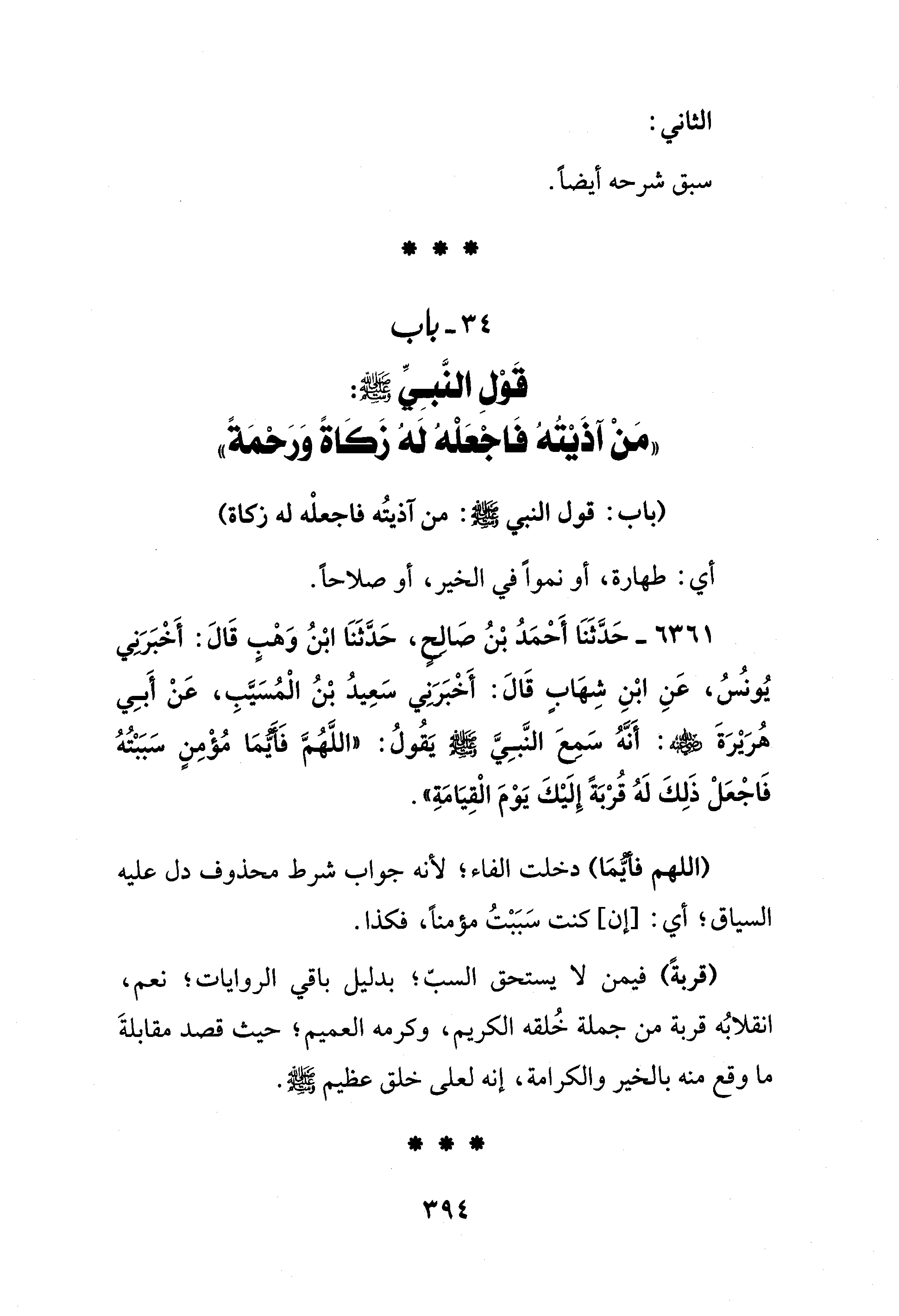 34 - باب قَوْلِ النَّبِيِّ - صلى الله عليه وسلم - "مَنْ آذَيْتُهُ فَاجْعَلْهُ لَهُ زَكَاةً وَرَحْمَةً"