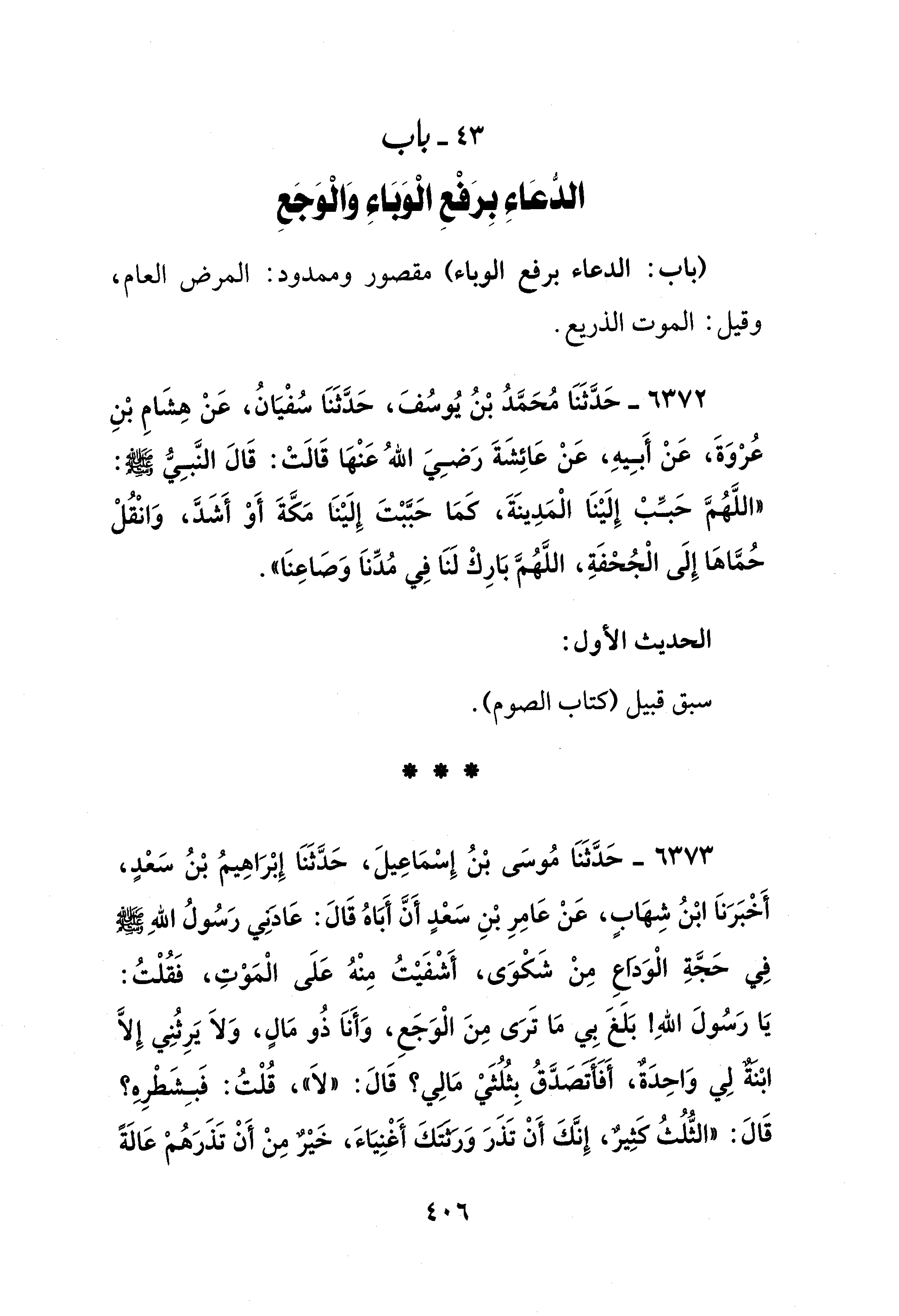 43 - باب الدُّعَاءِ بِرَفْعِ الْوَبَاءِ وَالْوَجَعِ