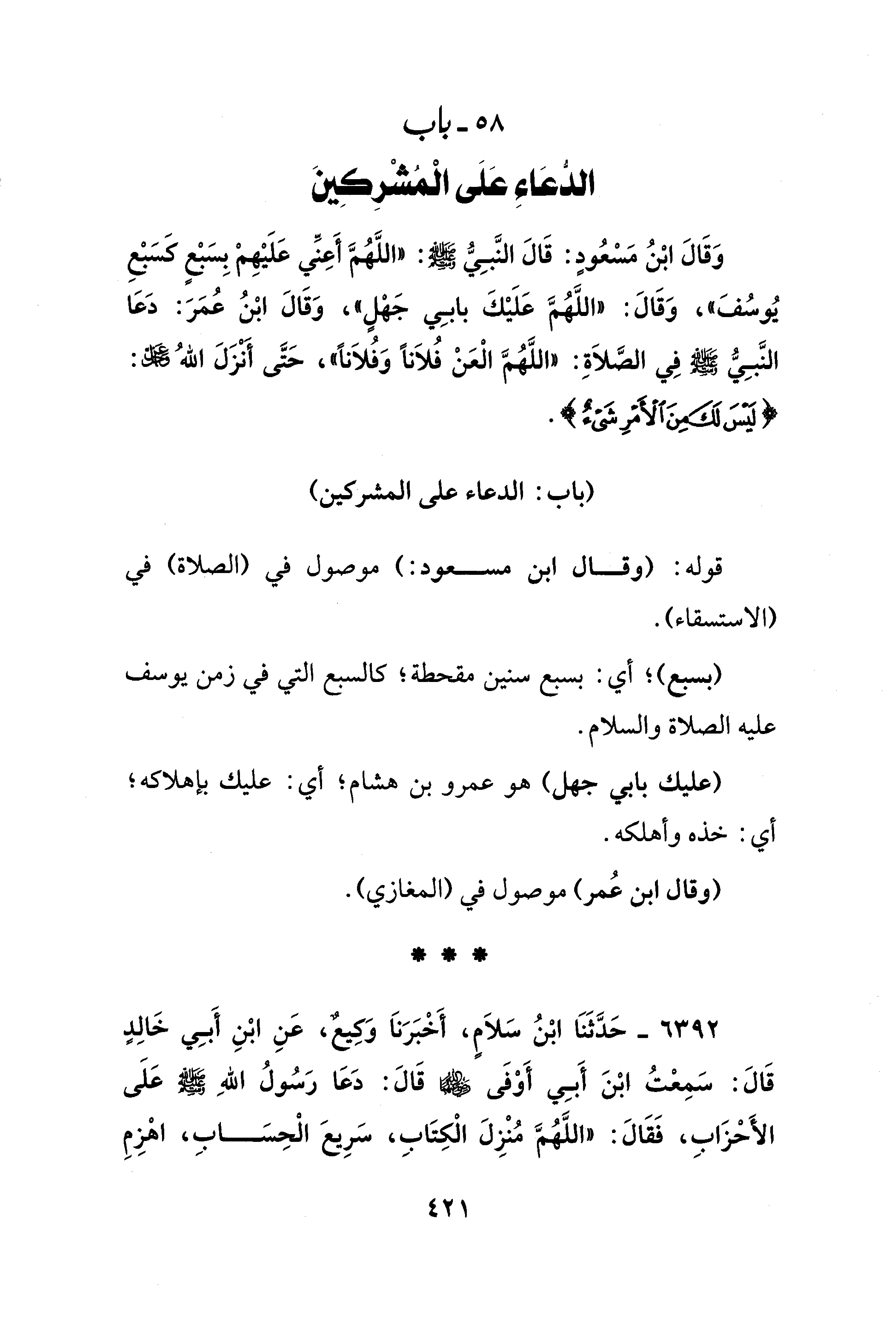 58 - باب الدُّعَاءِ عَلَى الْمُشْرِكِينَ