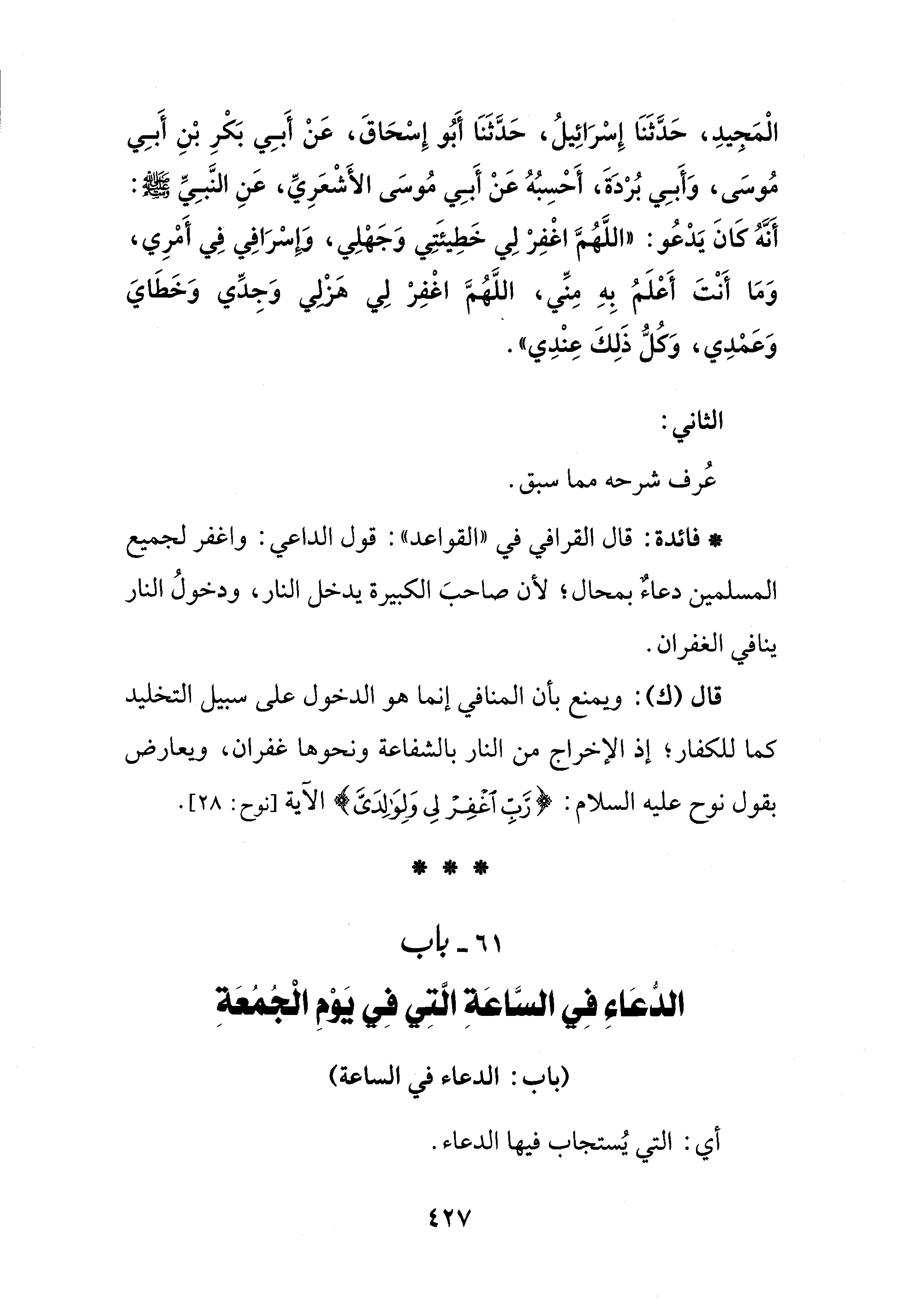 61 - باب الدُّعَاءِ فِي السَّاعَةِ الَّتِي فِي ويَوْمِ الْجُمُعَةِ