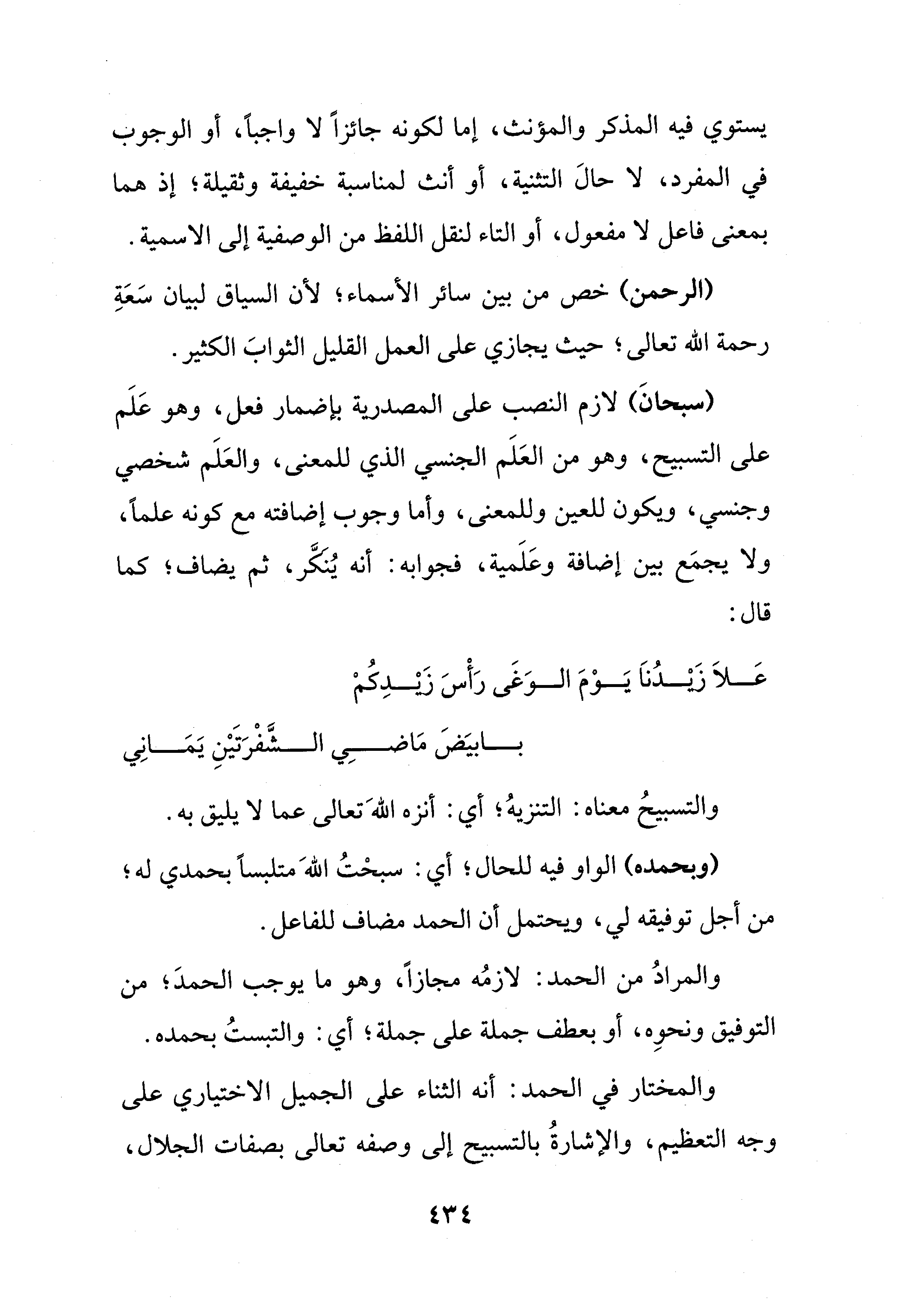 والمختار في الحمد: أنه الثّناء على الجميل الاختياري على وجه التعظيم، والإشارةُ بالتسبيح إلى وصفه تعالى بصفات الجلال،