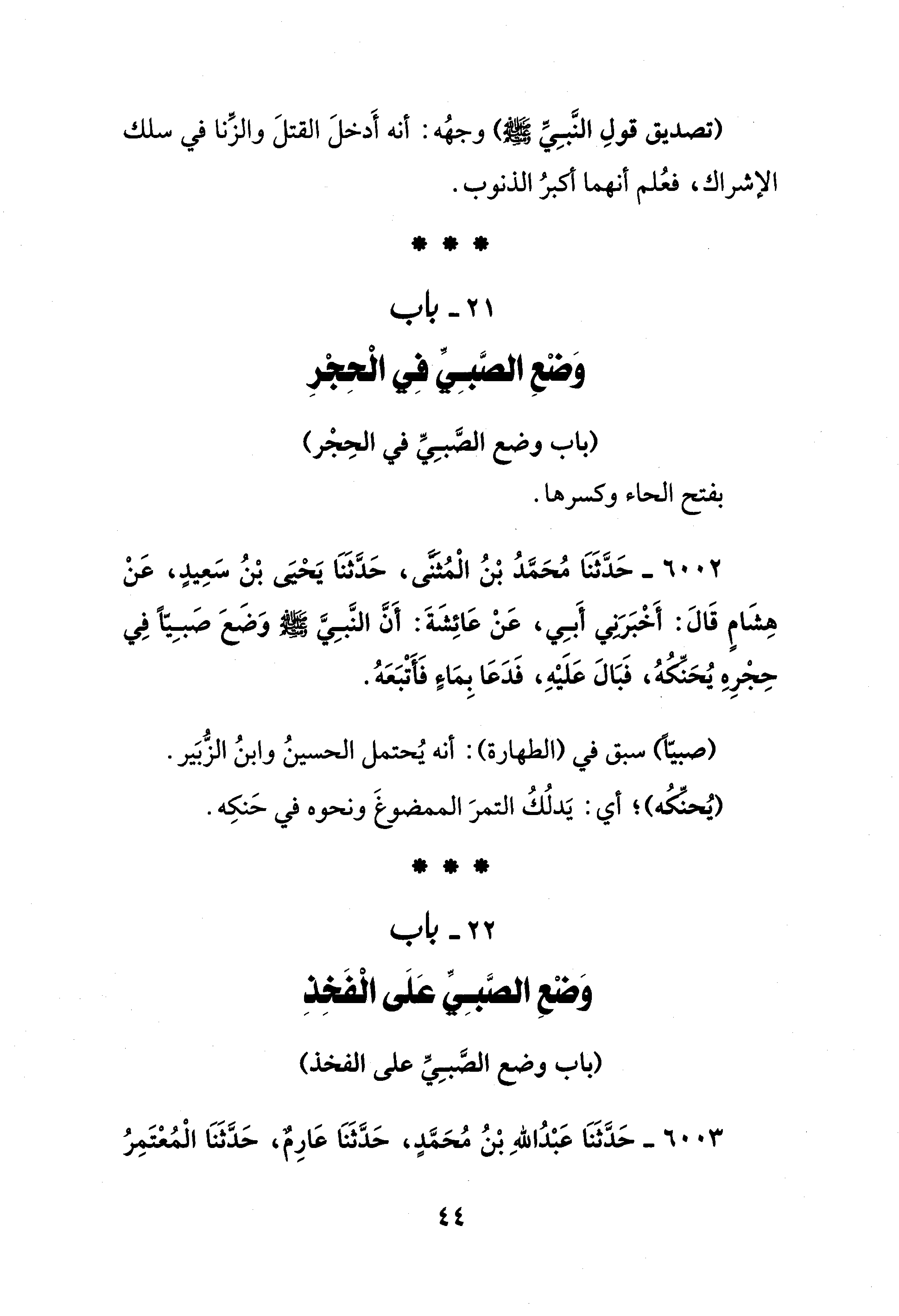 21 - باب وَضْعِ الصَّبِيِّ فِي الْحِجْرِ