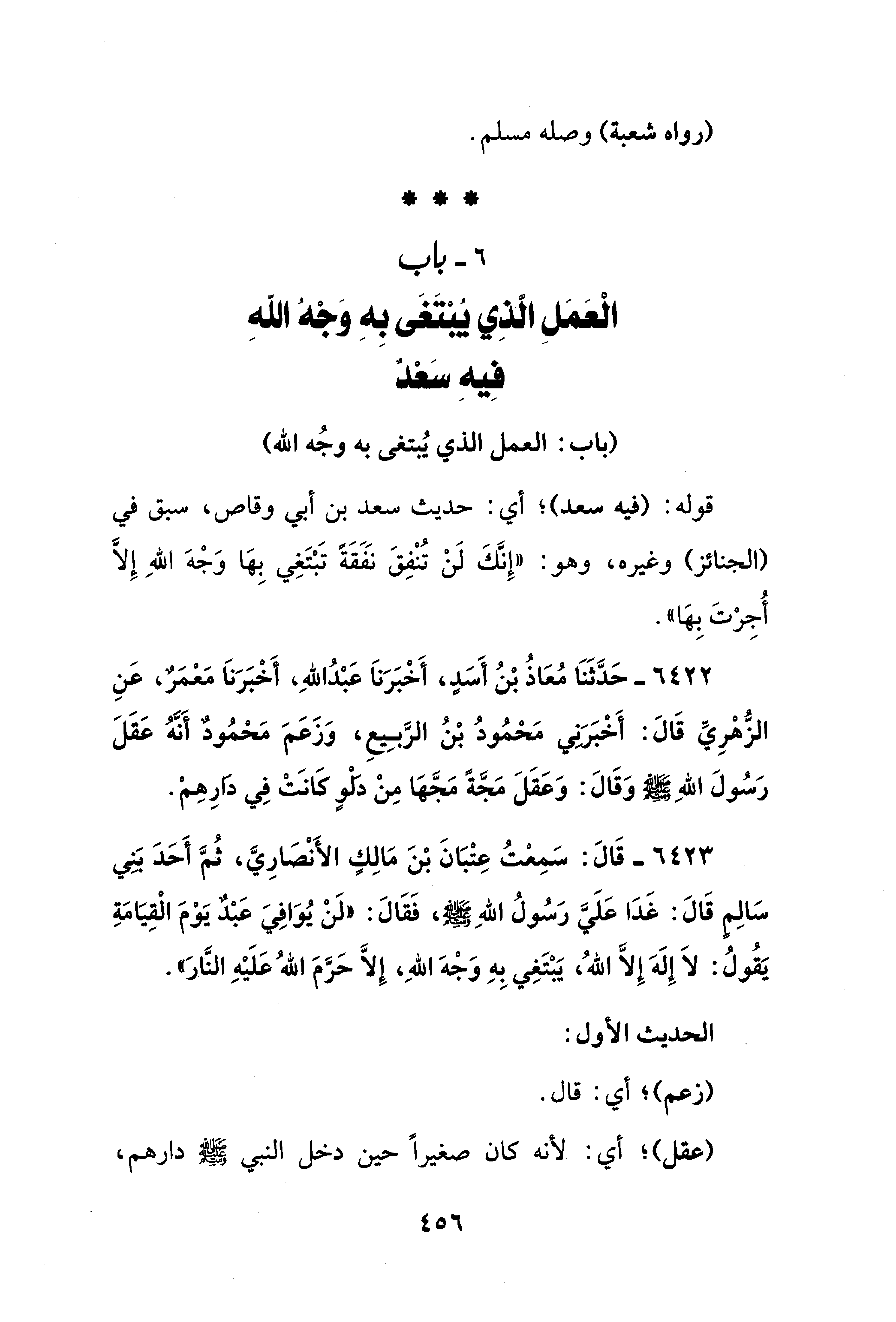 6 - باب الْعَمَلِ الَّذِي يُبْتَغَى بِهِ وَجْهُ اللهِ فِههِ سَعْدٌ