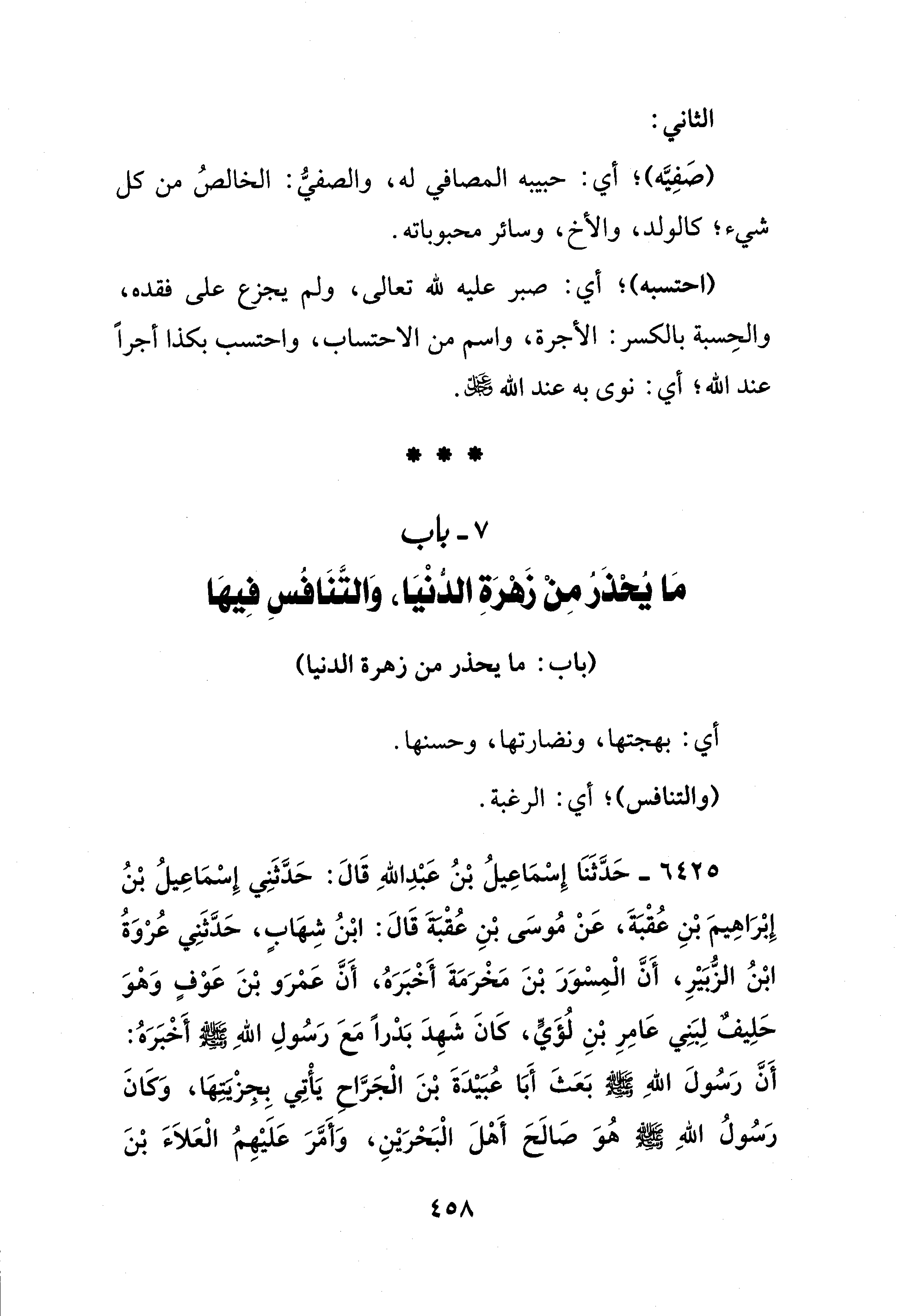 7 - باب مَا يُحْذَرُ مِنْ زَهْرَةِ الدُّنْيَا، وَالتَّنَافُسِ فِيهَا
