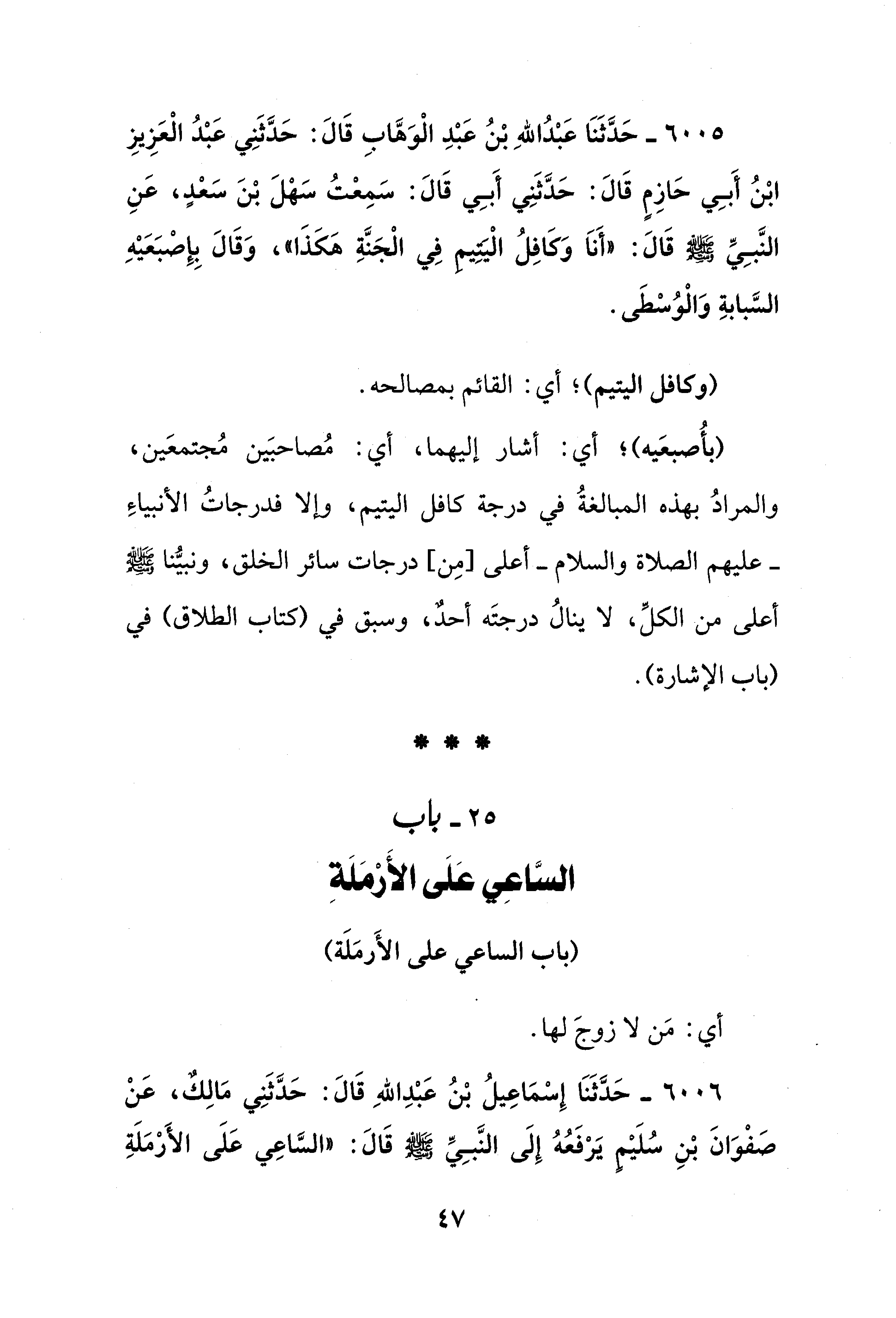 25 - باب السَّاعِي عَلَى الأَرْمَلَةِ