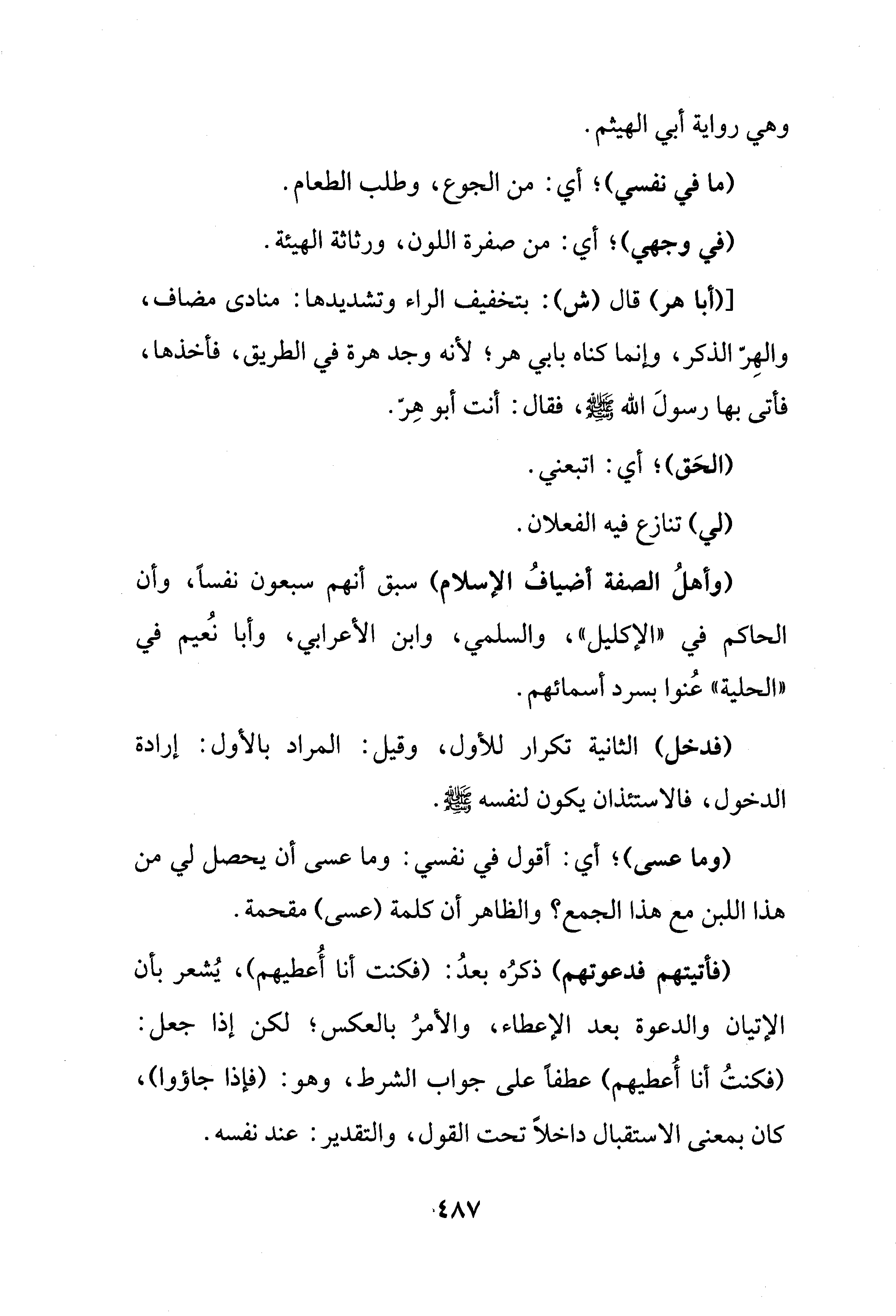[(أبا هو) قال (ش): بتخفيف الراء وتشديدها: منادى مضاف، والهِرِّ الذكر، وإنما كناه بابي هر؛ لأنه وجد هرة في الطريق، فأخذها، فأتى بها رسولَ الله - صلى الله عليه وسلم -، فقال: أنت أبو هِرّ.