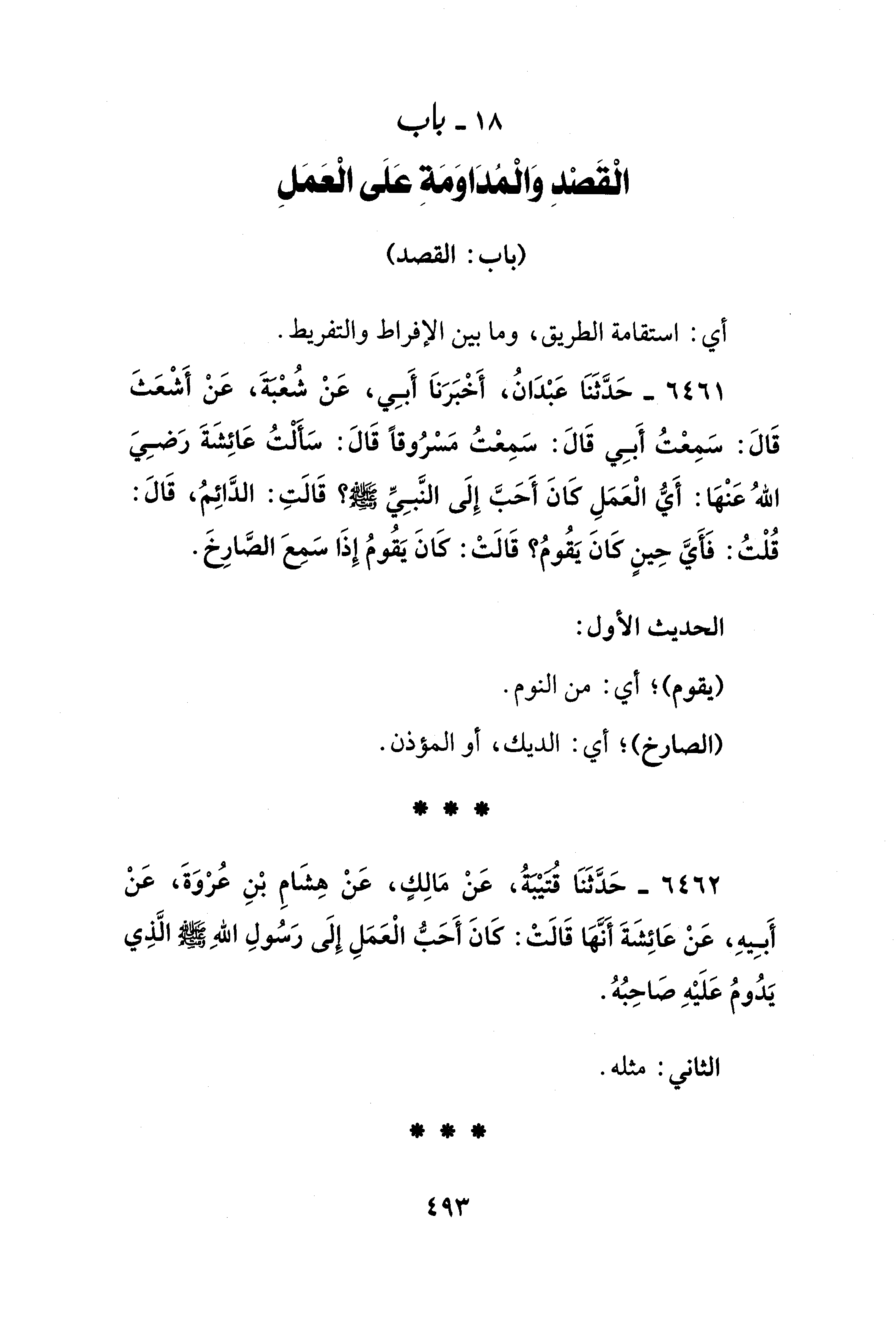 18 - باب الْقَصْدِ وَالْمُدَاوَمَةِ عَلَى الْعَمَلِ