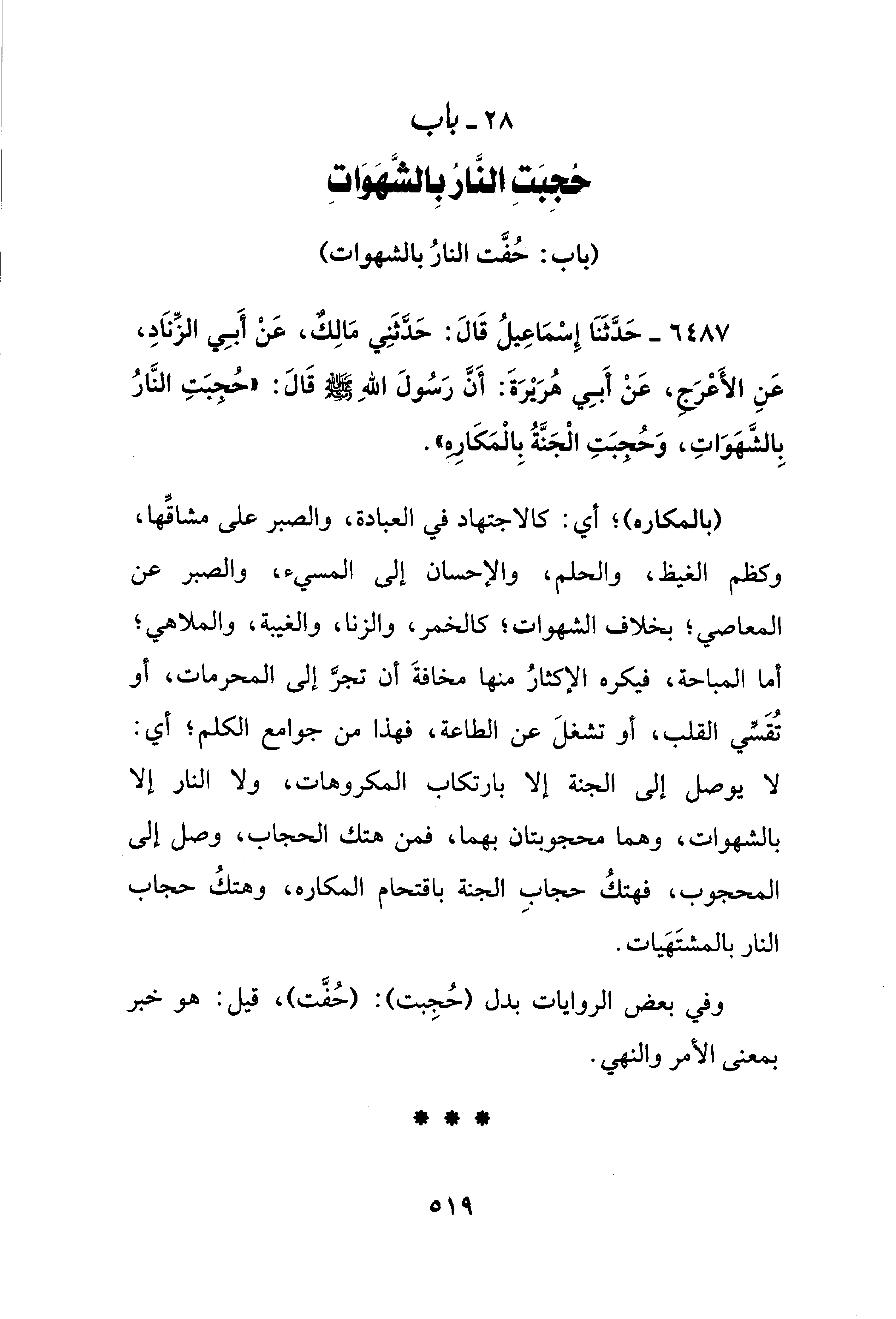 28 - باب حُجِبَتِ النَّارُ بِالشَّهَوَاتِ