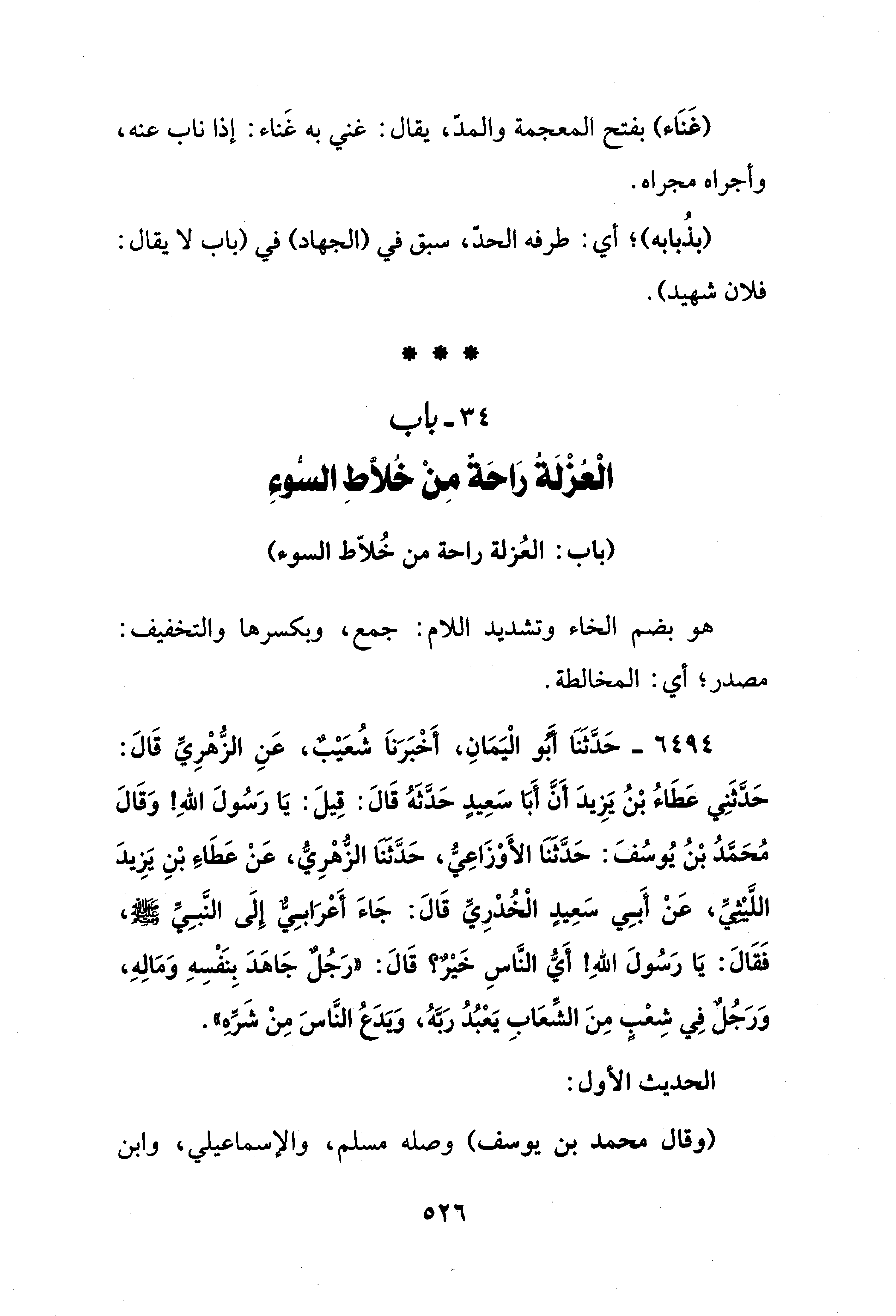34 - باب الْعُزْلَةُ رَاحَةٌ مِنْ خُلَّاطِ السُّوءِ