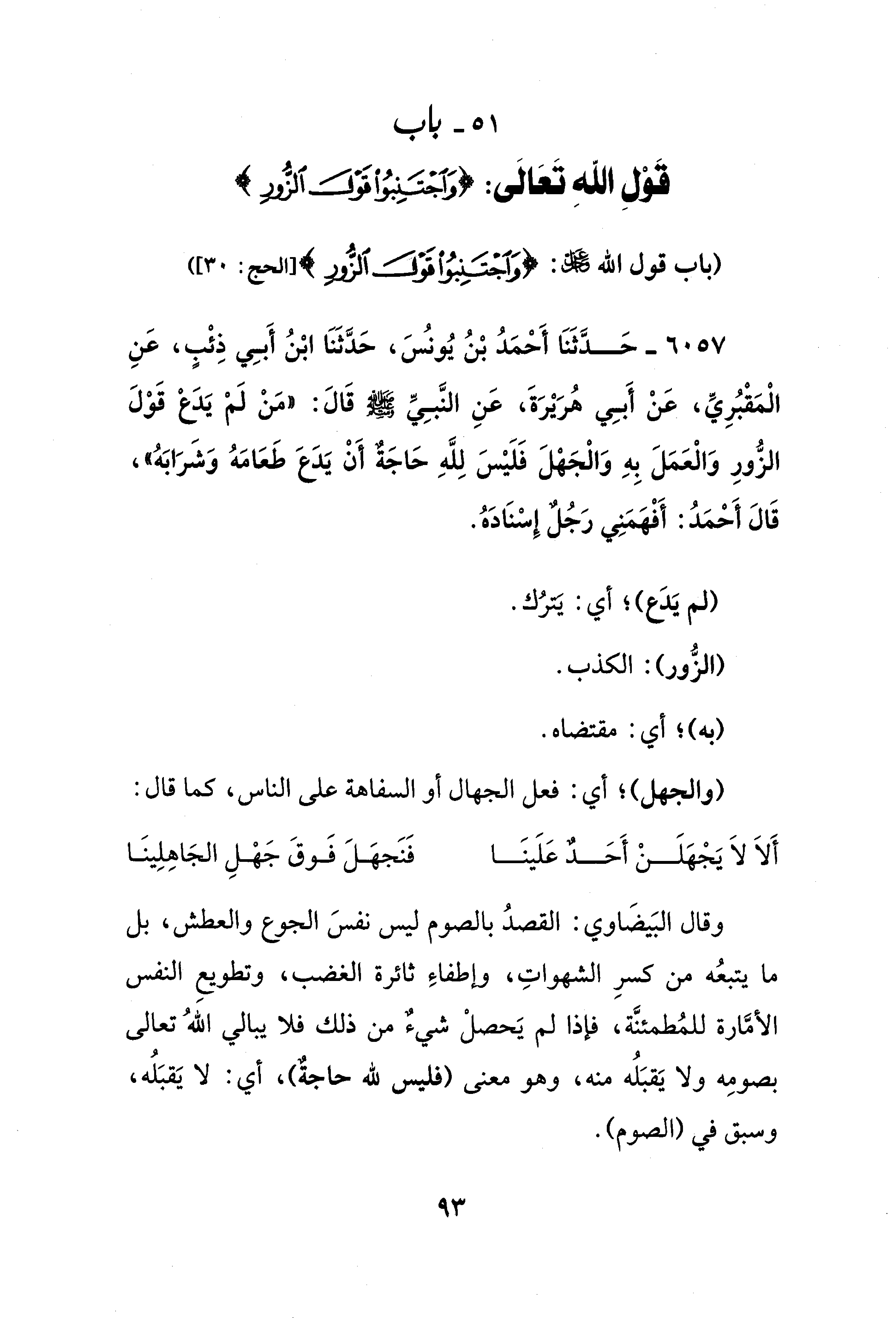 51 - باب قَوْلِ الله تَعَالَى: {وَاجْتَنِبُوا قَوْلَ الزُّورِ}