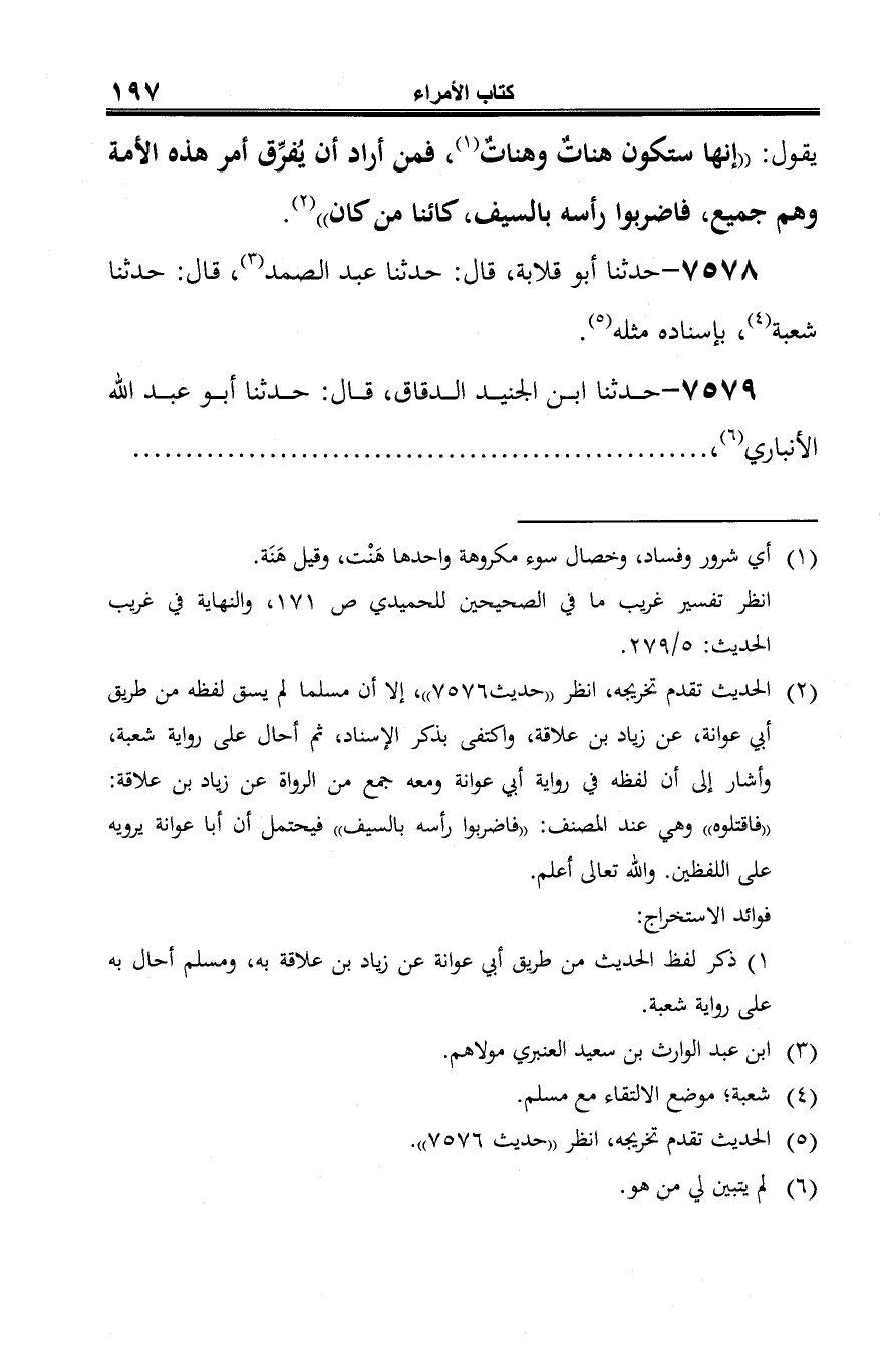 -[198]- عن شيبان (¬2)، عن زياد بن علاقة، عن عرفجة الأسلمي (¬3)، قال: قال رسول الله -صلى الله عليه وسلم-، فذكر مثله، إلا أنه قال: "فاقتلوه" (¬4).