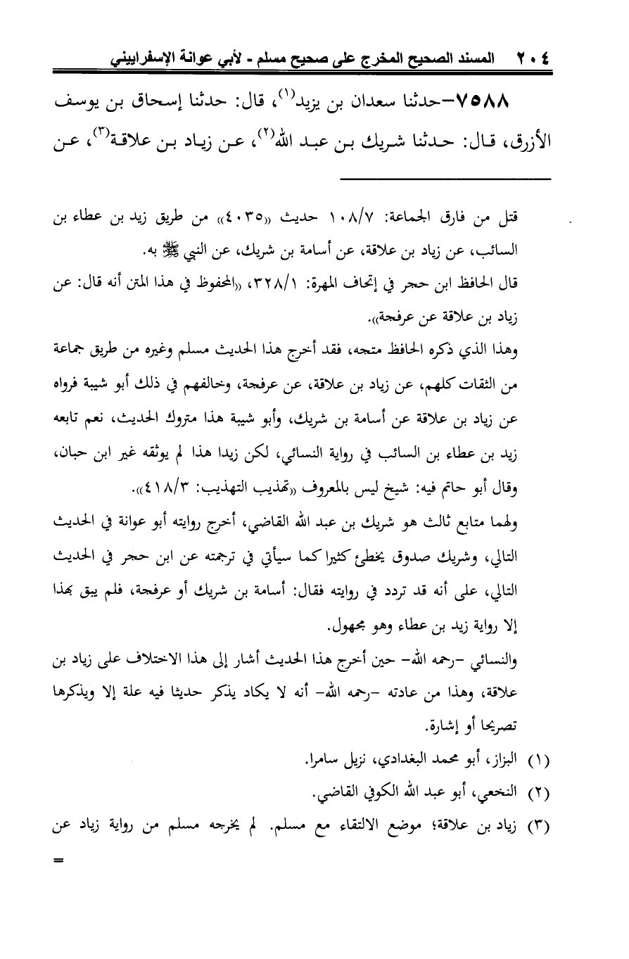 7588 - حدثنا سعدان بن يزيد (¬1)، قال: حدثنا إسحاق بن يوسف الأزرق، قال: حدثنا شريك بن عبد الله (¬2)، عن زياد بن علاقة (¬3)، عن