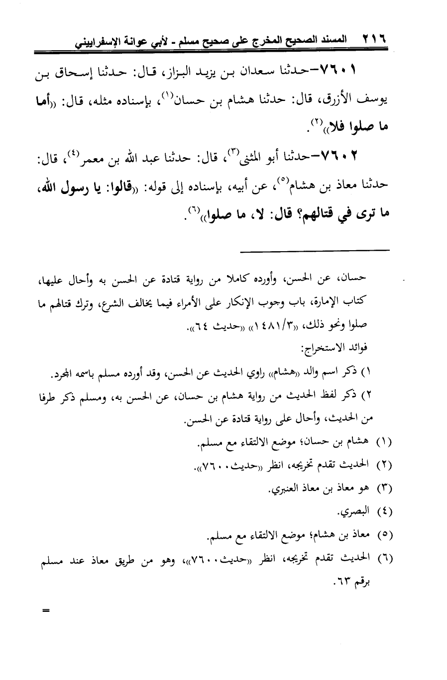 (¬3) معاذ بن هشام؛ موضع الالتقاء مع مسلم.