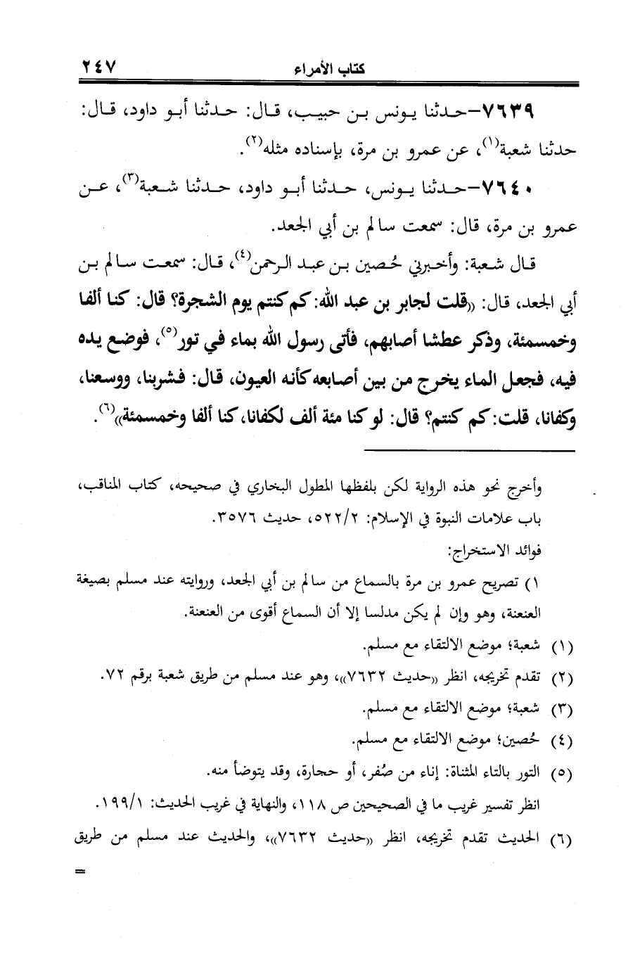 -[248]- = حصين برقم 73، إلا أن مسلما اختصر الحديث، ولم يخرج منه إلا جزءه الأخير، وهو قوله "قلت: كم كنتم ... " الحديث.