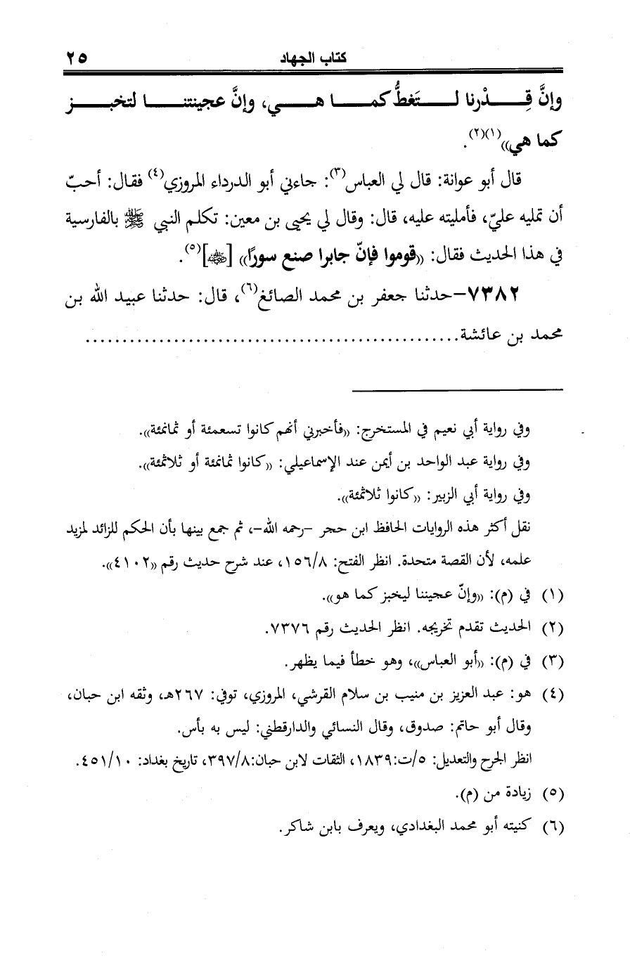 7382 - حدثنا جعفر بن محمد الصائغ (¬1)، قال: حدثنا عبيد الله بن محمد بن عائشة