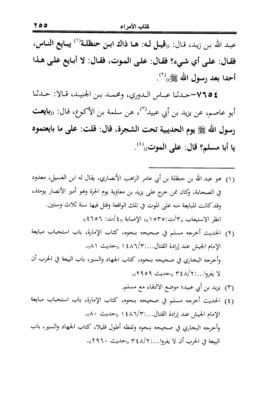 (¬2) الحديث أخرجه مسلم في صحيحه بنحوه، كتاب الإمارة، باب استحباب مبايعة الإمام الجيش عند إرادة القتال ... : 3/ 1486" "حديث 80".