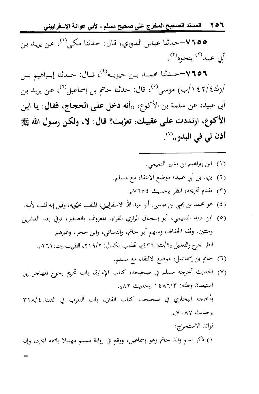 (¬3) حاتم بن إسماعيل؛ موضع الالتقاء مع مسلم.