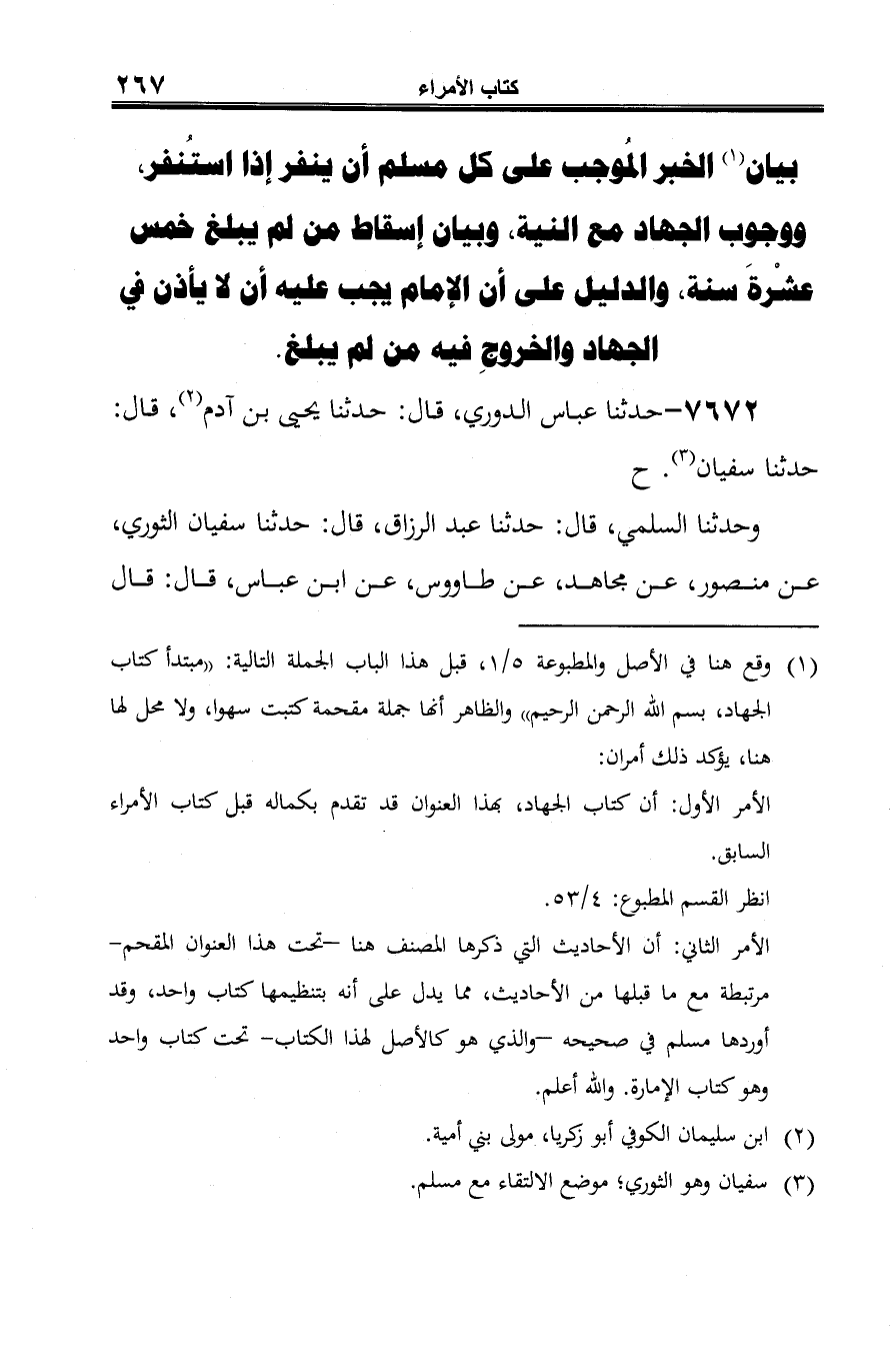 الأمر الأول: أن كتاب الجهاد، بهذا العنوان قد تقدم بكماله قبل كتاب الأمراء السابق.