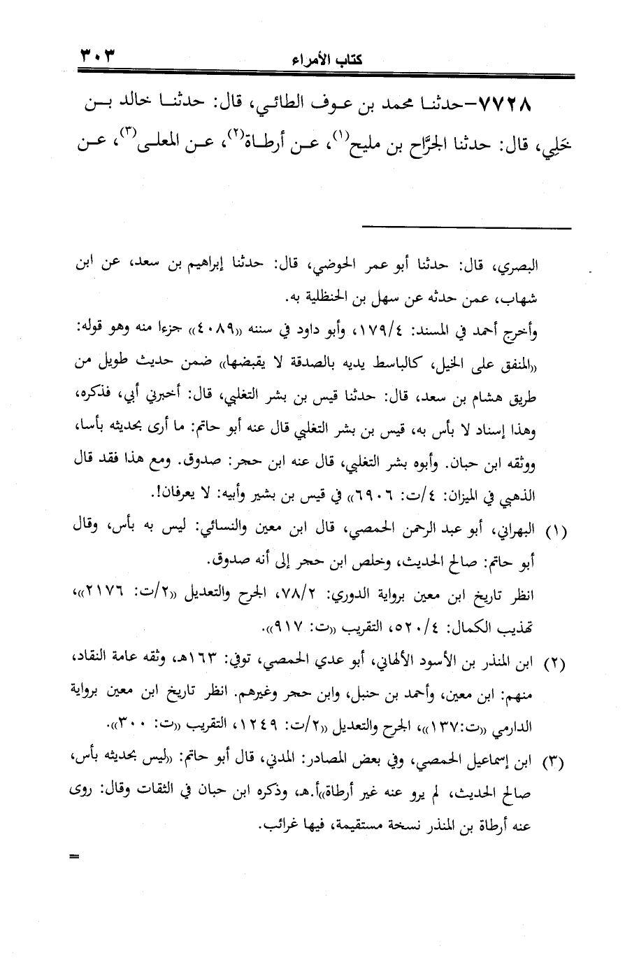 (¬1) البهراني، أبو عبد الرّحمن الحمصي، قال ابن معين والنسائي: ليس به بأس، وقال أبو حاتم: صالح الحديث، وخلص ابن حجر إلى أنه صدوق.