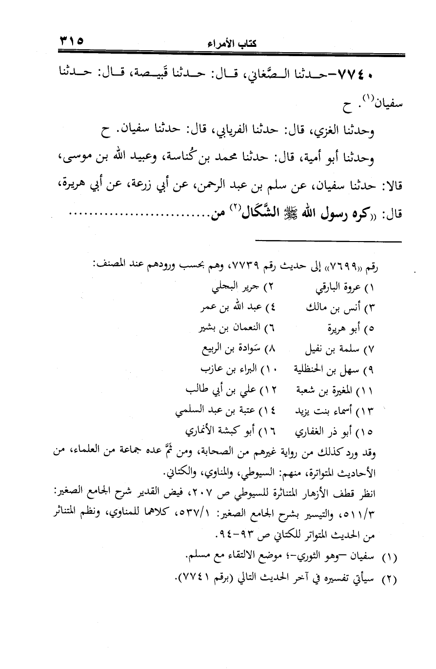 7740 - حدّثنا الصَّغاني، قال: حدّثنا قَبيصة، قال: حدّثنا سفيان (¬1). ح