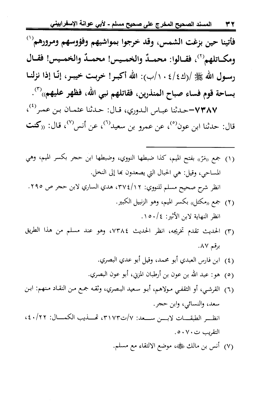 7387 - حدثنا عباس الدوري، قال: حدثنا عثمان بن عمر (¬1)، قال: حدثنا ابن عون (¬2)، عن عمرو بن سعيد (¬3)، عن أنس (¬4)، قال: "كنت