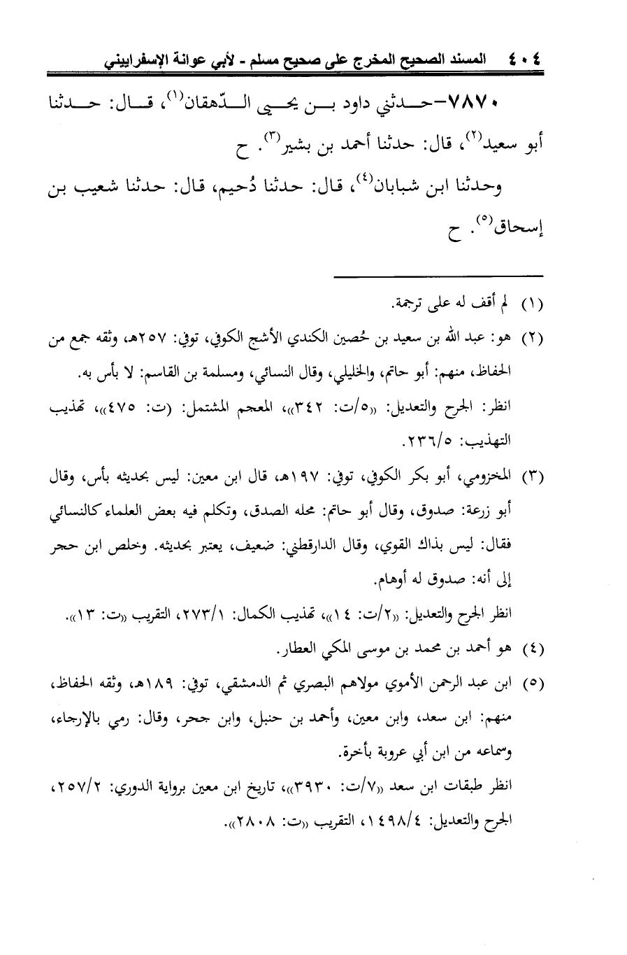 7870 - حدثني داود بن يحيى الدّهقان (¬1)، قال: حدثنا أبو سعيد (¬2)، قال: حدثنا أحمد بن بشير (¬3). ح