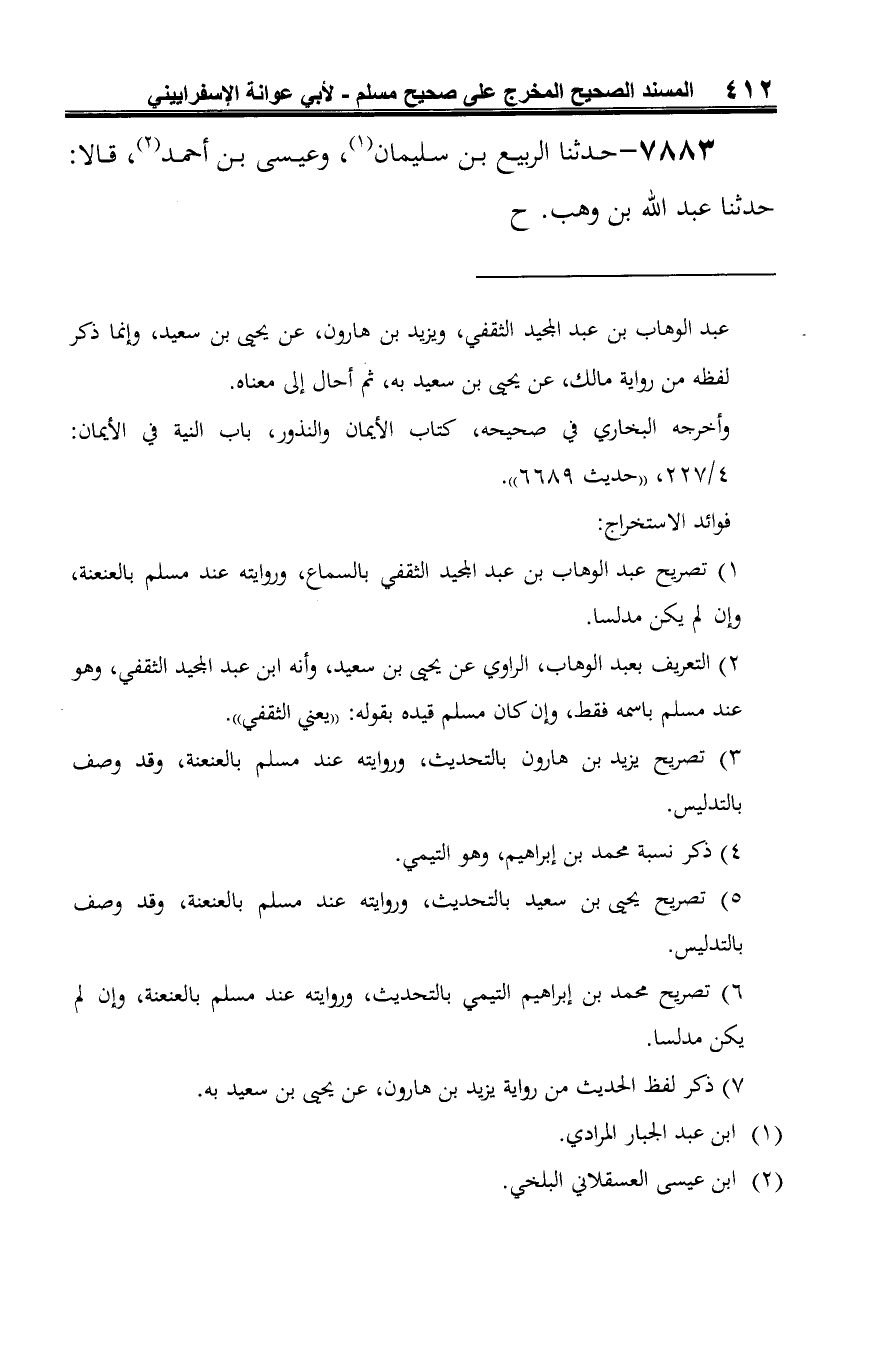 7883 - حدثنا الربيع بن سليمان (¬1)، وعيسى بن أحمد (¬2)، قالا: حدثنا عبد الله بن وهب. ح