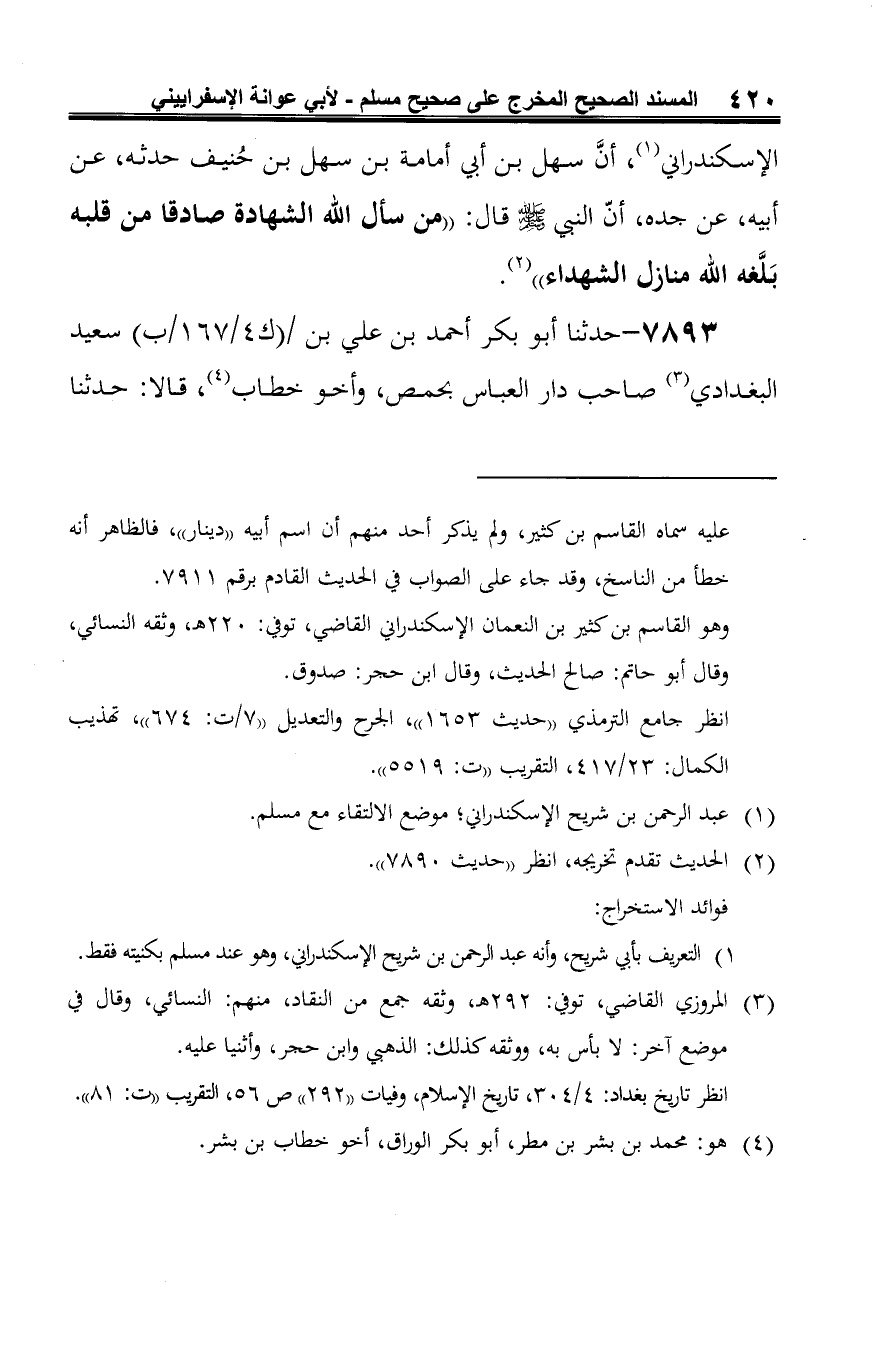 (¬4) الحديث أخرجه مسلم في صحيحه، كتاب الإمارة، باب استحباب طلب الشهادة في سبيل الله تعالى: 3/ 1517، "حديث 156".